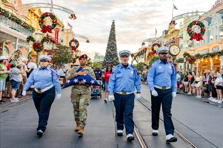 - Disney was able to express their gratitude to Sgt. Harris for her dedicated service during a special Flag Retreat ceremony at Magic Kingdom Park, where she was honored as the day's representative of the U.S. Armed Forces.