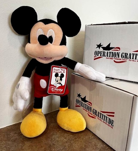 - The care package from Operation Gratitude included a Mickey Mouse plush toy and the announcement that her service would be honored with a trip to Walt Disney World upon her return home.