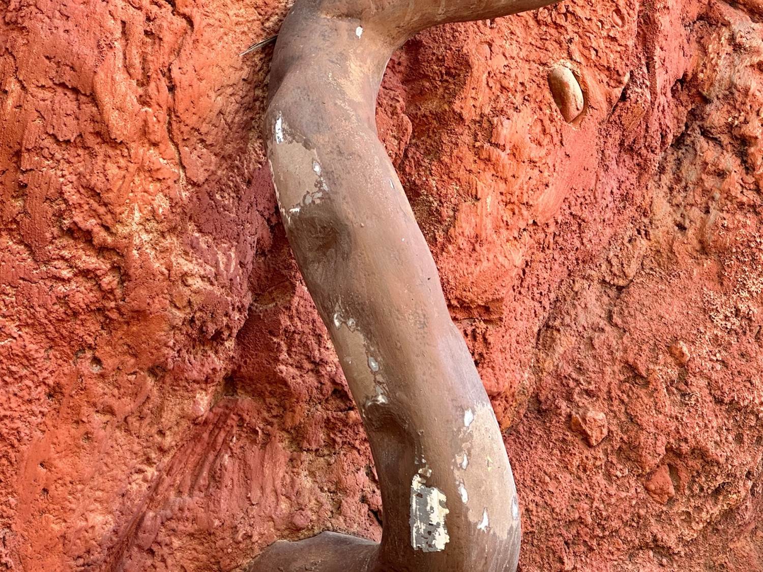 Around the side of the attraction near the former Briar Patch gift shop, many of the thorns remain, along with the previous color scheme of the rock work.