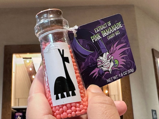 Yzma has flavored her llama potion into a pink lemonade treat, complete with the vial from The Emperor’s New Groove.