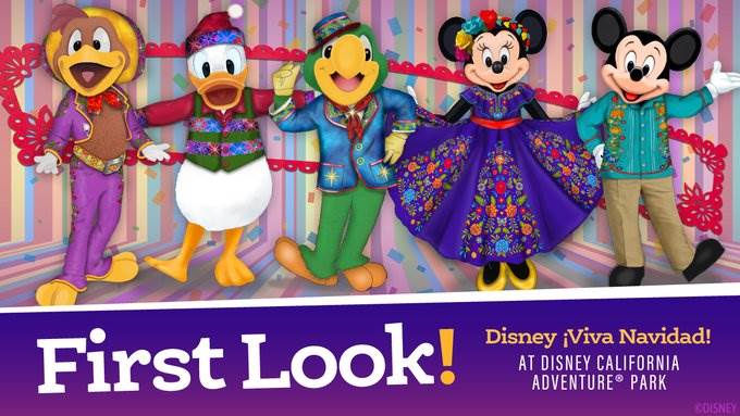 - Disney Parks has revealed that when our favorite feathered friends, The Three Caballeros, return to Disney California Adventure for the 10th anniversary of ¡Viva Navidad!, they (along with Mickey and Minnie Mouse) will be wearing brand new outfits!