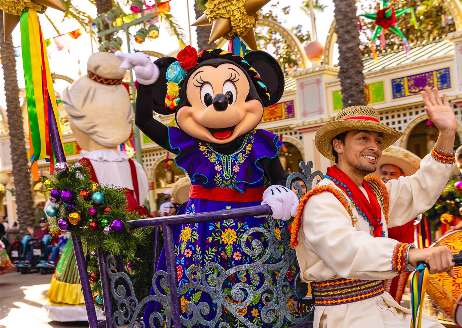 - The Three Caballeros will host a joyous street party, featuring Mexican folklórico dancers and mariachis, Brazilian samba dancers and percussionists, giant mojiganga puppets and Mickey Mouse and Minnie Mouse in their holiday best.