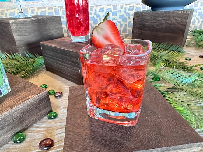 - Kula Strawberry Sake: Wildflowers Junmai Sake, Campari Liqueur, Rockey’s Botanical Liqueur, and wild strawberry