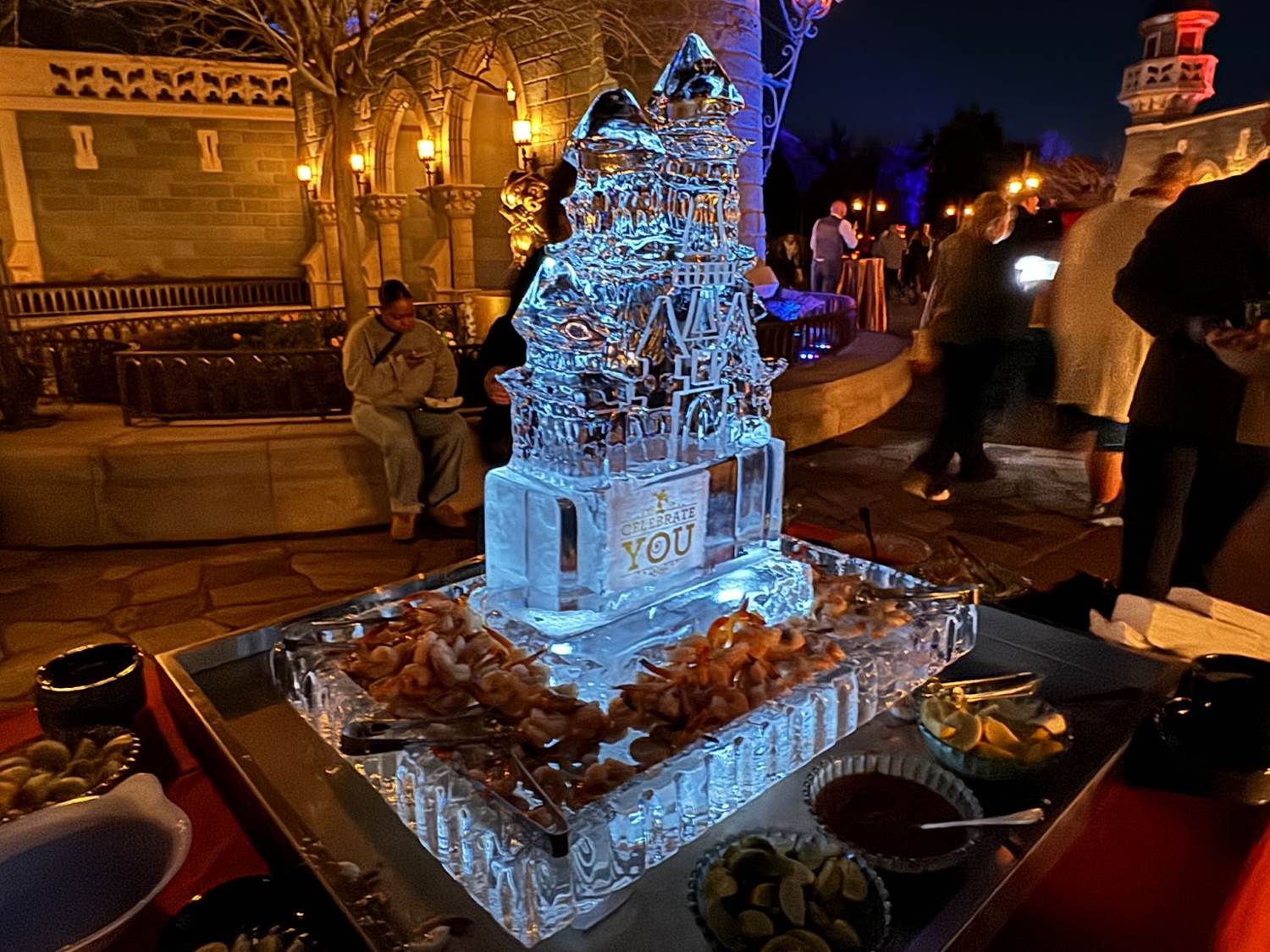 But that was just the start of the party. Cast members were treated to complimentary food and drink throughout the park. This included the normal guest offerings such as Casey’s corn dog nuggets, but also special items including the famous jumbo shrimp which was featured at various stations, each adorned with a special ice sculpture.