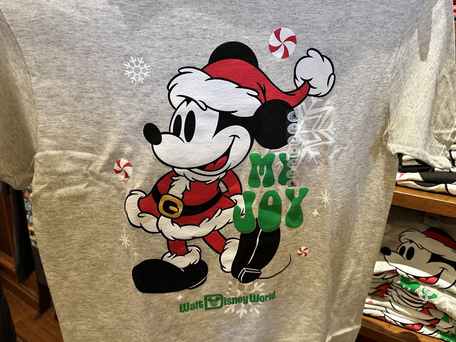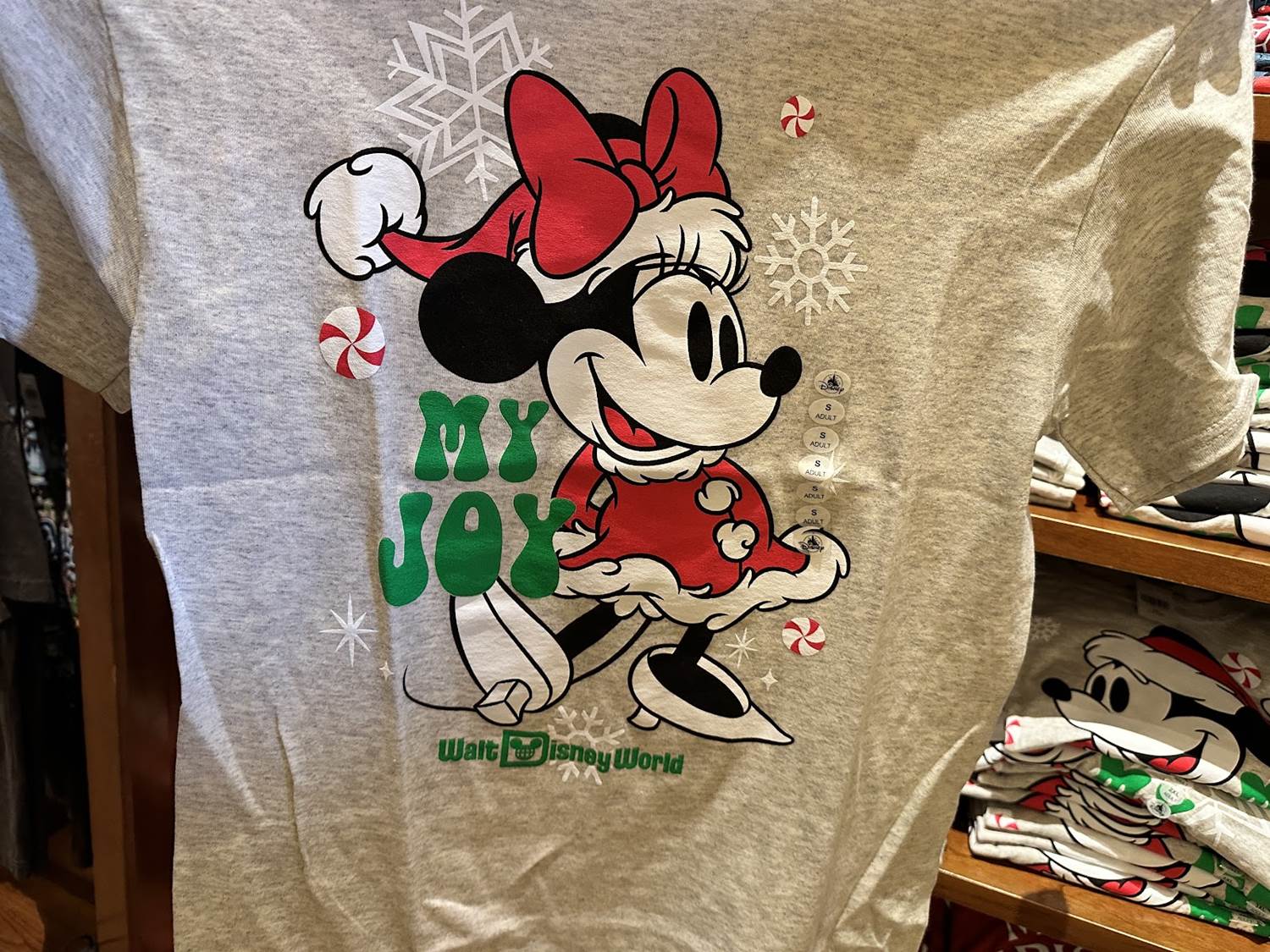 And finally, a pair of matching shirts featuring Mickey Mouse and Minnie Mouse each in their holiday finest, with the words “My Joy" on it for a fun matching ensemble for you and your partner.