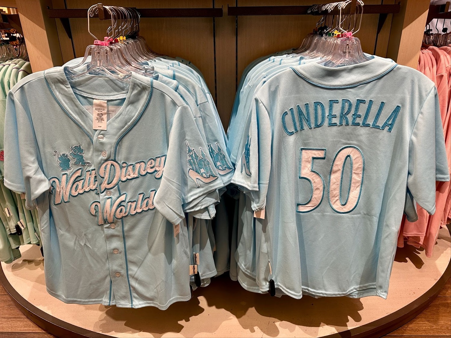 - For those looking to pick up these new jerseys but can’t head to the parks, Disney Store has you covered. You can find the Aurora and Cinderella Walt Disney World designs here and here, respectively.