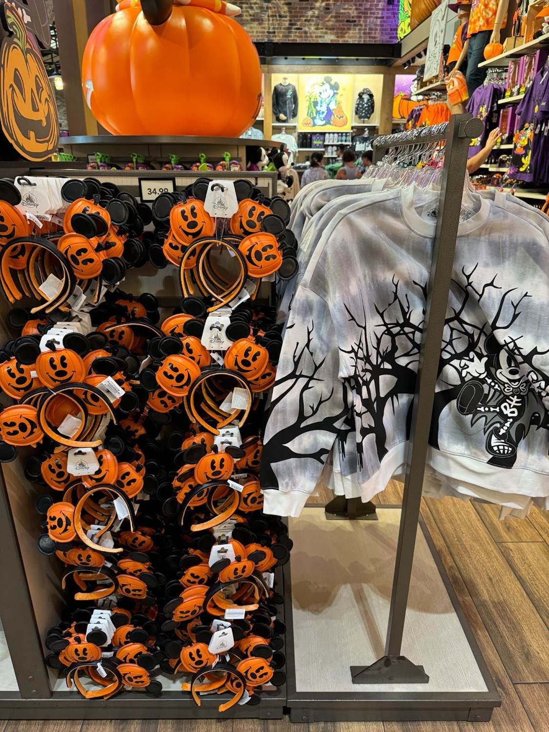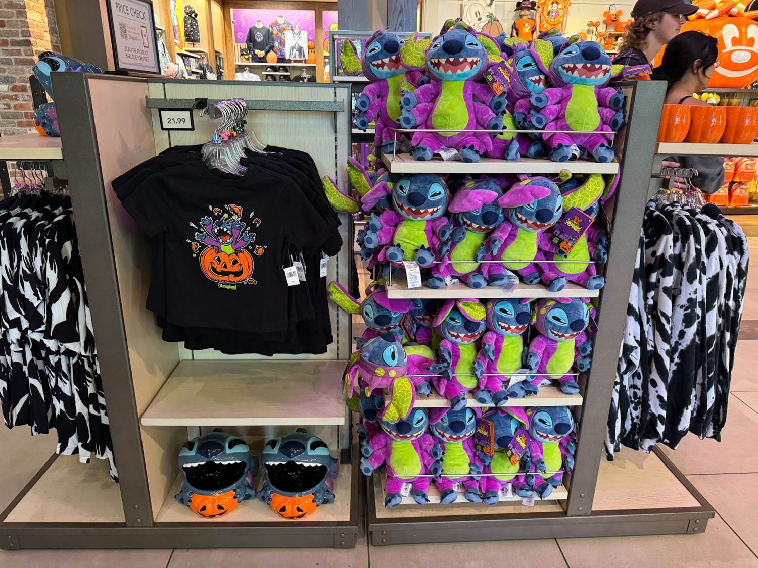 At the center of the display you’ll find Mickey pumpkin-themed merchandise, along with everyone’s favorite mischievous alien Stitch.