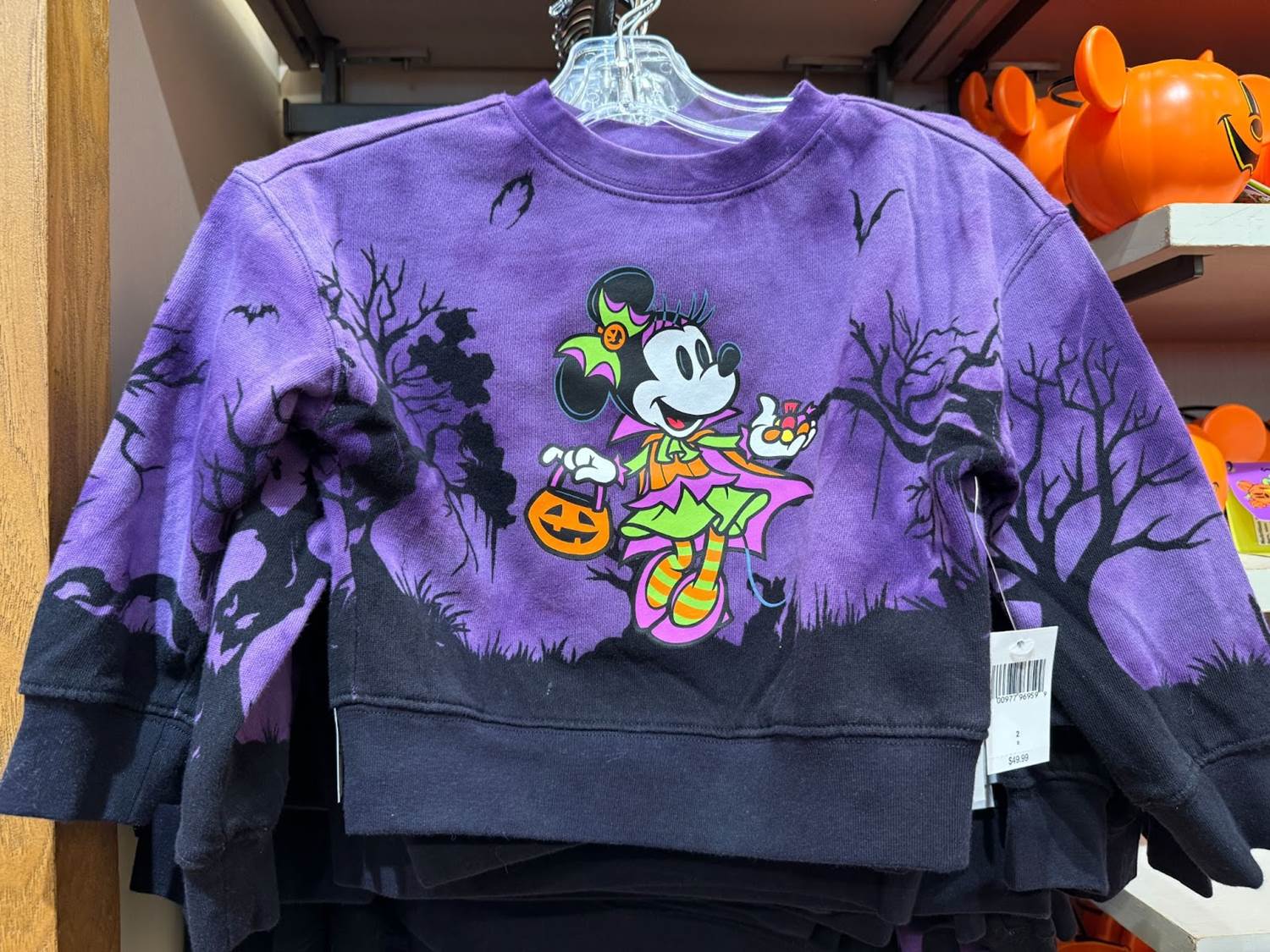 Mickey and Minnie Mouse get some t-shirts and children’s sweaters dedicated to their Halloween costumes this year.