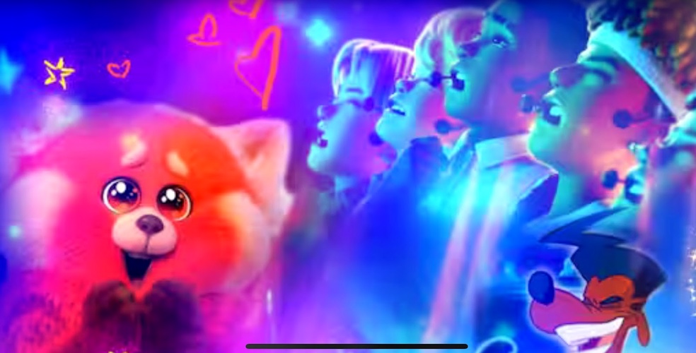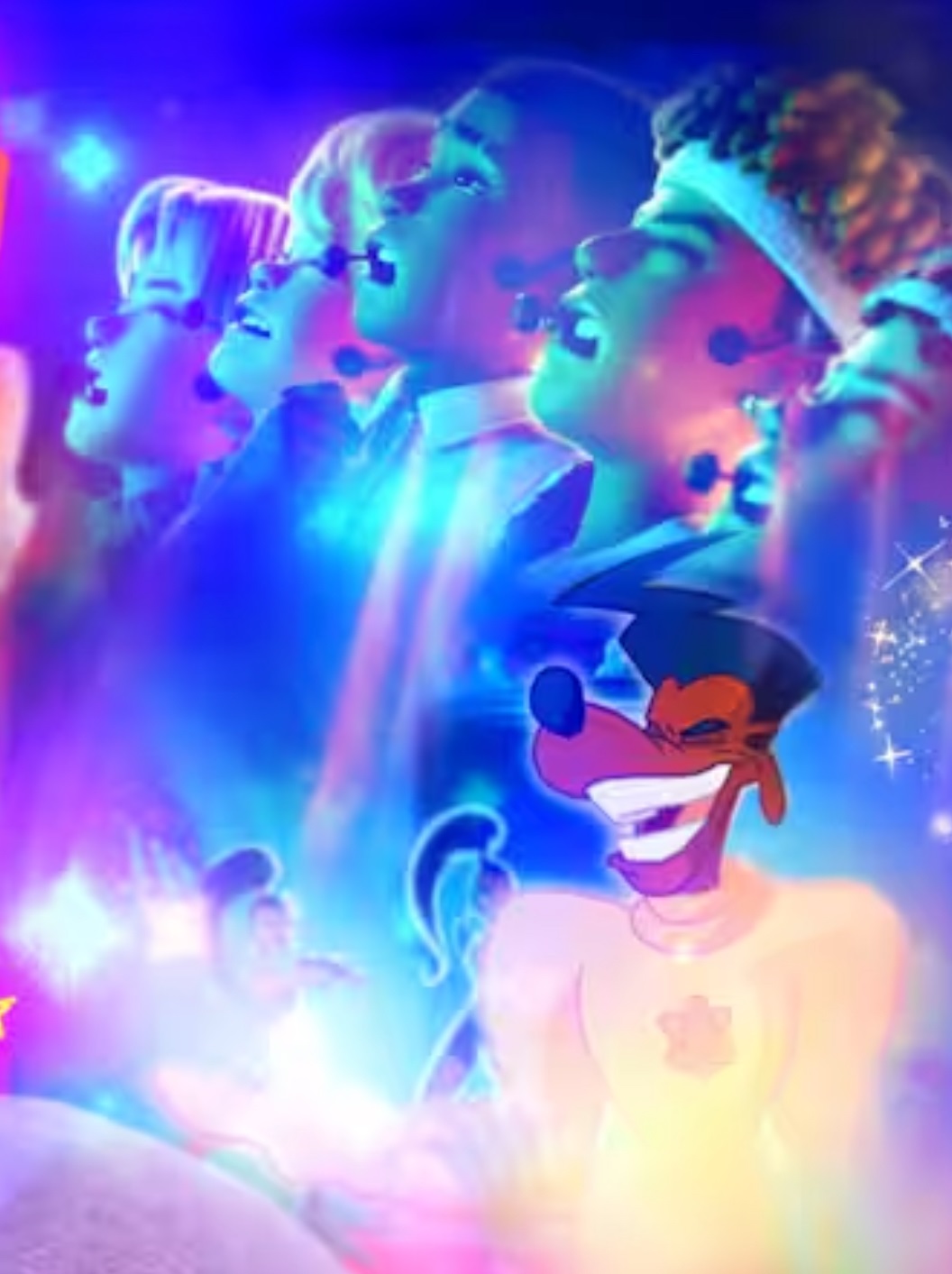 Based on the art, there will also be not one, but two moments featuring a high-energy concert from a film product. Both come from climactic moments in their films, Turning Red and A Goofy Movie. The art signifies that the 4-TOWN concert that was practically destroyed by Mei’s mom in panda form in Turning Red will be featured, possibly with the heartfelt moment where not only Mei and her friends and aunts save her mother (with a little help from the film’s boy band).