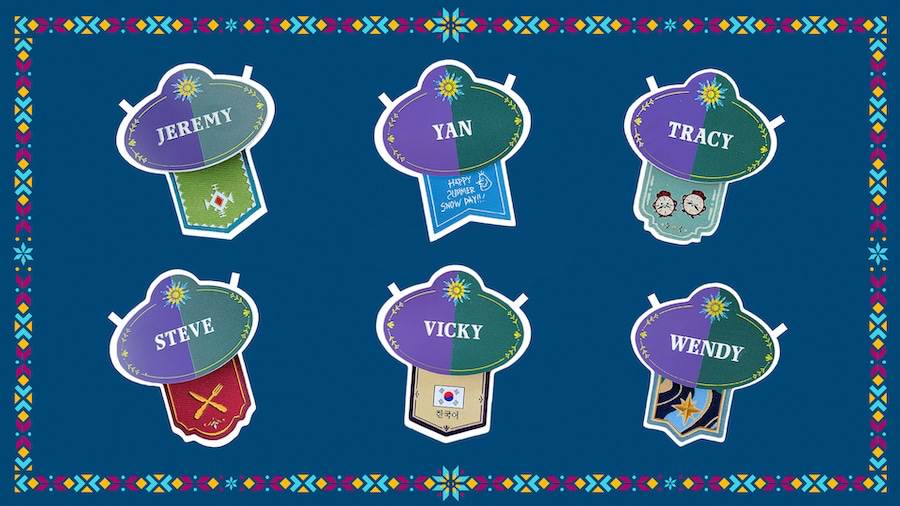 - Each name tag features its own flag noting the location of those wearing it such as Frozen Ever After, Wandering Oaken’s Sliding Sleighs and Tick Tock Toys & Collectibles. And as we are celebrating Summer Snow Day at World of Frozen, they also depict a sunflower, the symbol of celebration, with yellow petals that blossom and merge into blue icy crystals.