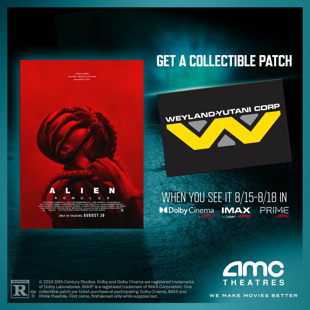 - Those seeing Alien: Romulus from August 15th - 18th will receive a collectible Weyland-Yutani Corp patch.
