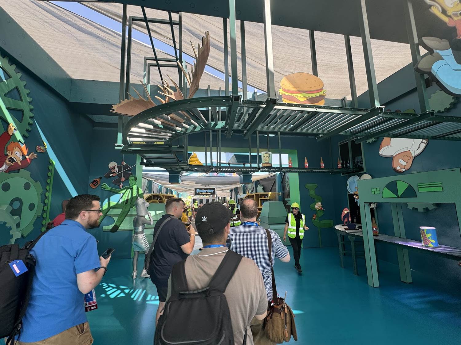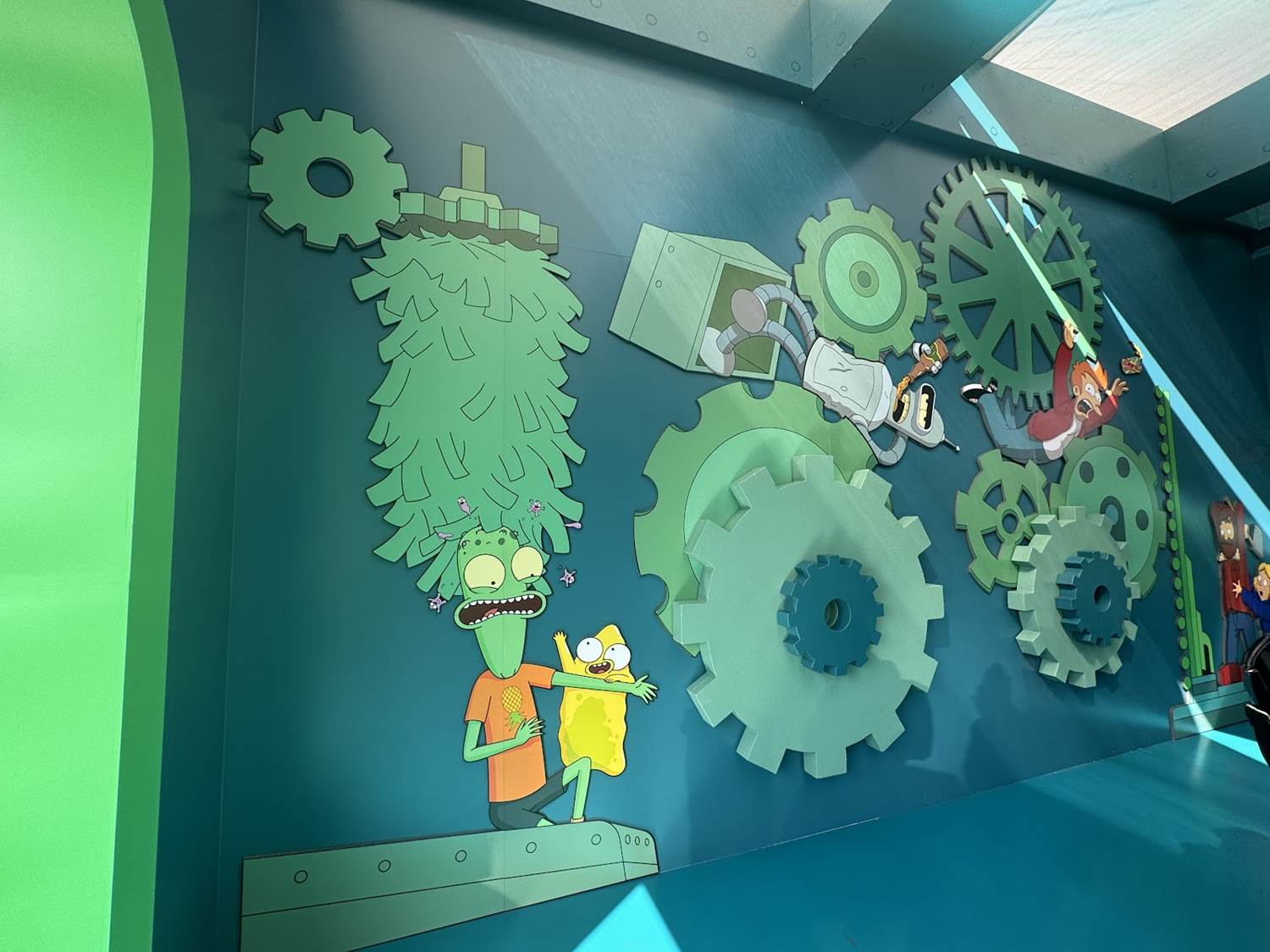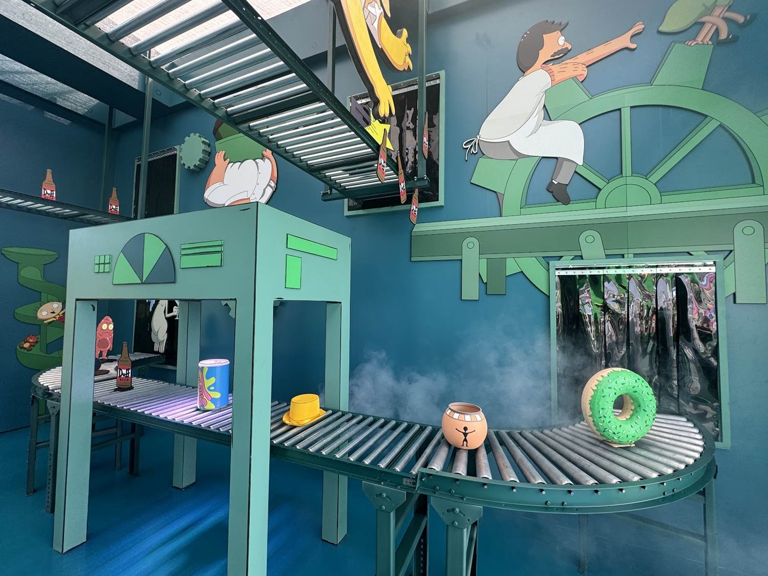 Designed to look like a factory with all the characters of the various animated shows, activations include a floor filled with references to Animayhem's flagship programs, with Bob Belcher, Homer and Bart Simpson, Fry and Bender, Hit-Monkey and Bryce, and more flying through the gears and conveyor belts that make it all work.