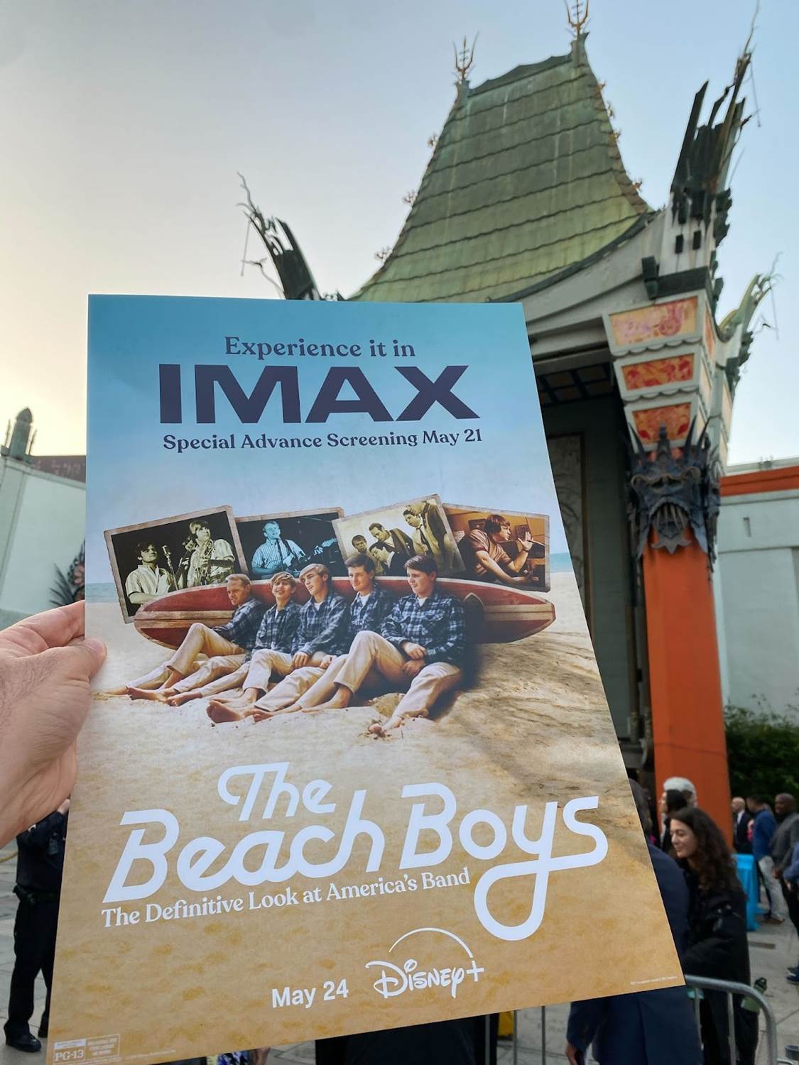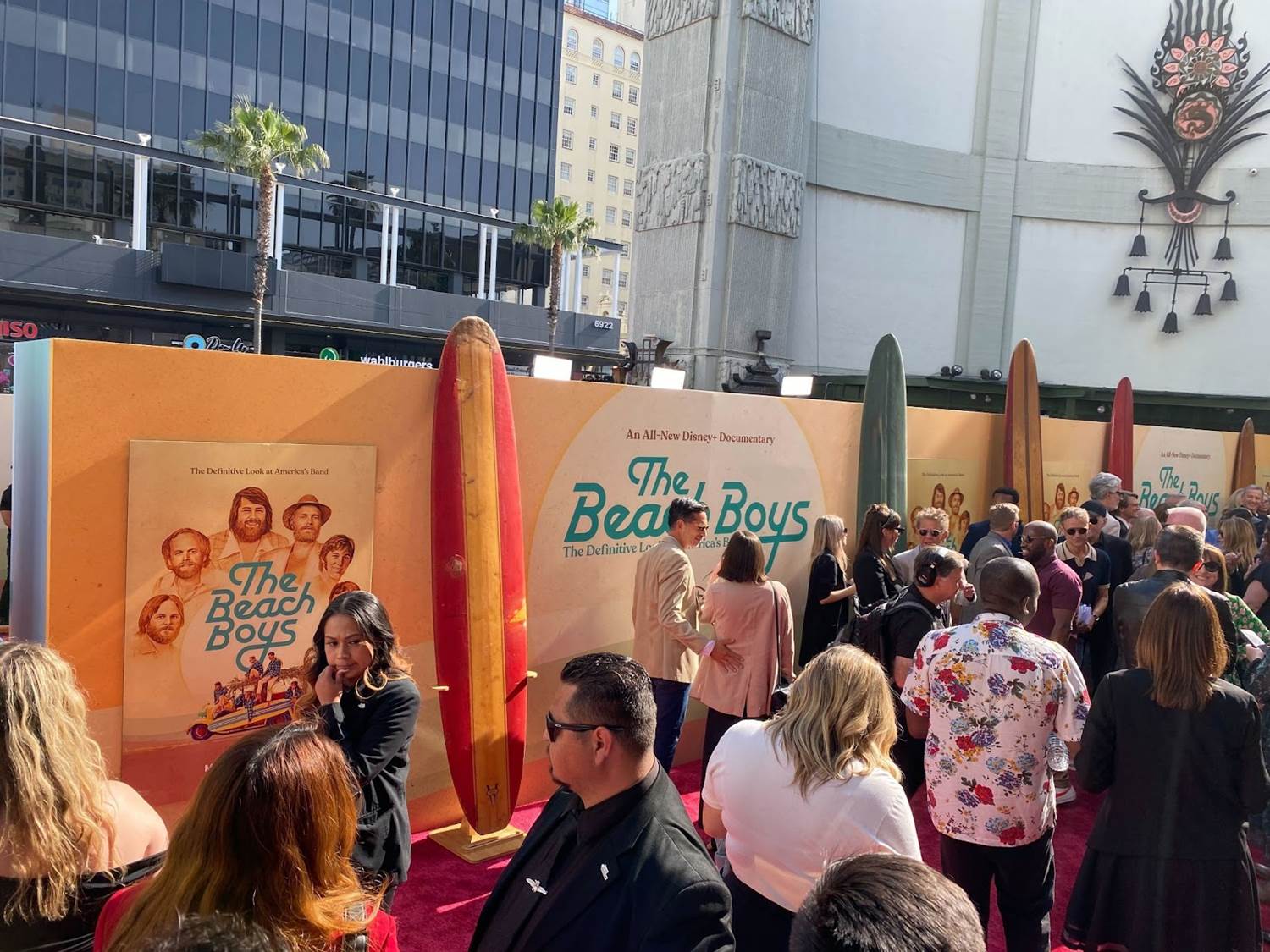 Yesterday evening at Hollywood’s famous TCL Chinese Theatre (more famously and historically known as Grauman’s Chinese Theatre), Disney+ held a world premiere event for the highly anticipated new The Beach Boys feature-length music documentary from producer and co-director Frank Marshall. I had the wonderful opportunity to attend this event, and below I’ll share a brief recap of my experience along with some photos taken by myself and provided to Laughing Place by Disney.