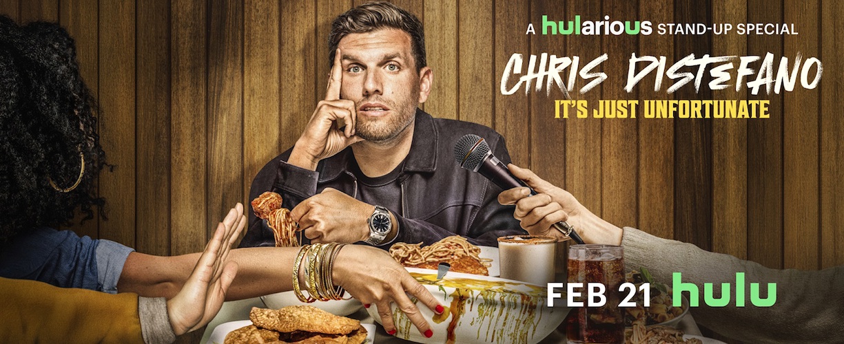 - Chris Distefano: It’s Just Unfortunate marks his third special, and is set to debut on Friday, February 21st on Hulu, as the fourth installment of Hulu’s stand-up “Hularious" block.