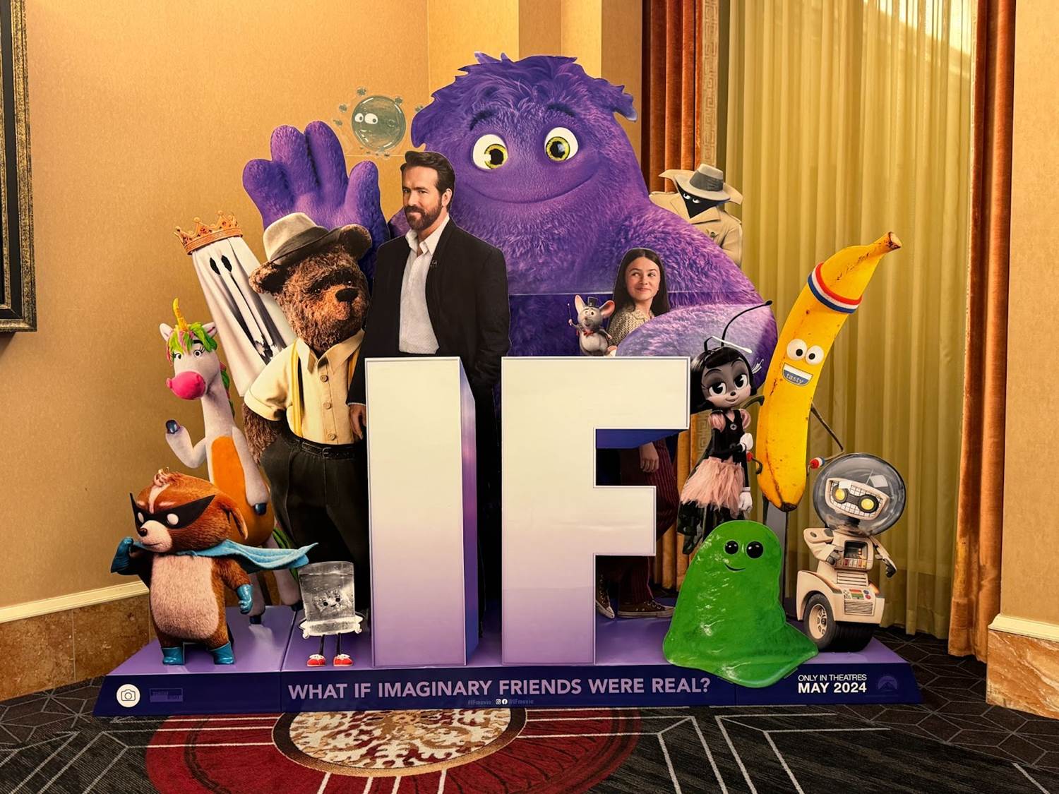 The other title with a big presence throughout CinemaCon this year was If from writer/director John Krasinski. This family-friendly comedy pairs Ryan Reynolds with a young girl on a mission to pair discarded imaginary friends with children in need. For fans of The Office, the lead If, a purple monster named Blue, is voiced by Steve Carrell, reuniting Michael Scott and Jim (off-screen). The most recent trailer was played on the big screen for attendees, with an If-themed dinner party one of the nights. If comes to theaters on May 17th.