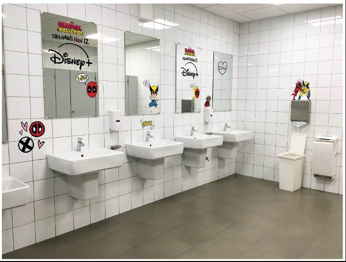 - With the news comes a very unique ad campaign, playing on the idea of a “stream." Taking over restrooms at multiple sports arenas where the stalls, mirrors, and more will be decorated to celebrate the arrival of Deadpool & Wolverine on Disney+.