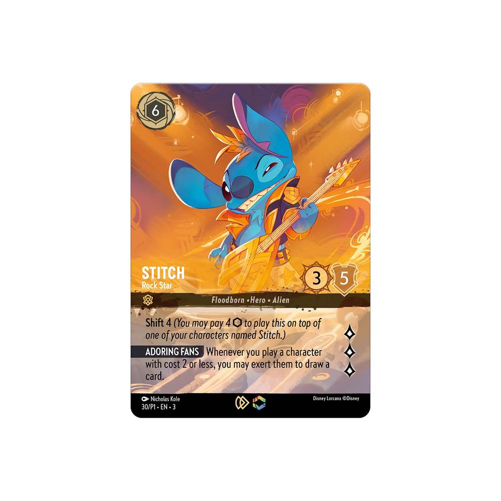 - These events will include a unique Enchanted Stitch – Rock Star Promo card that is only available as a prize at the Into the Inklands Championships and the top two players at the event can also win a playmat featuring the new Stitch – Rock Star artwork.