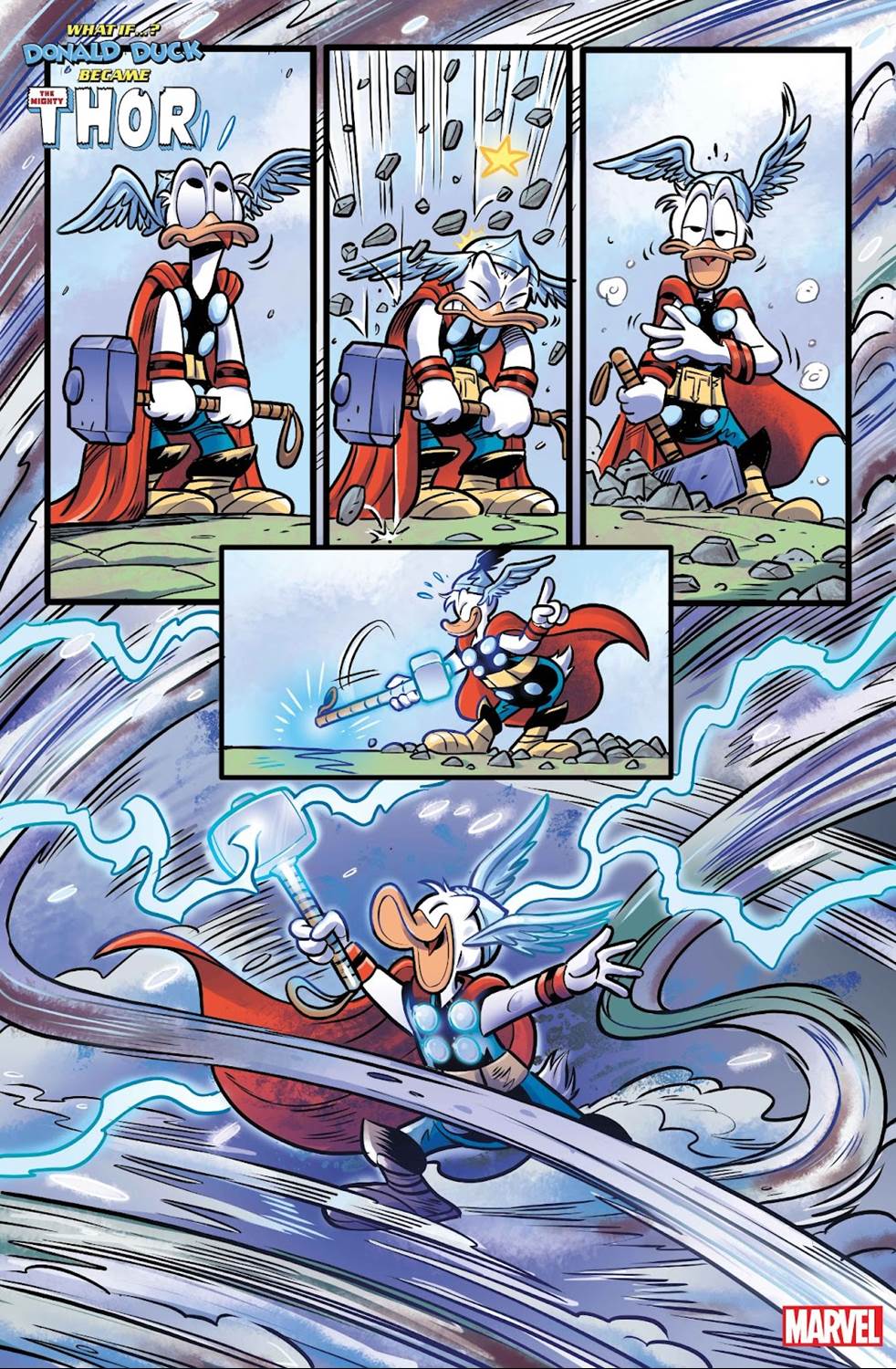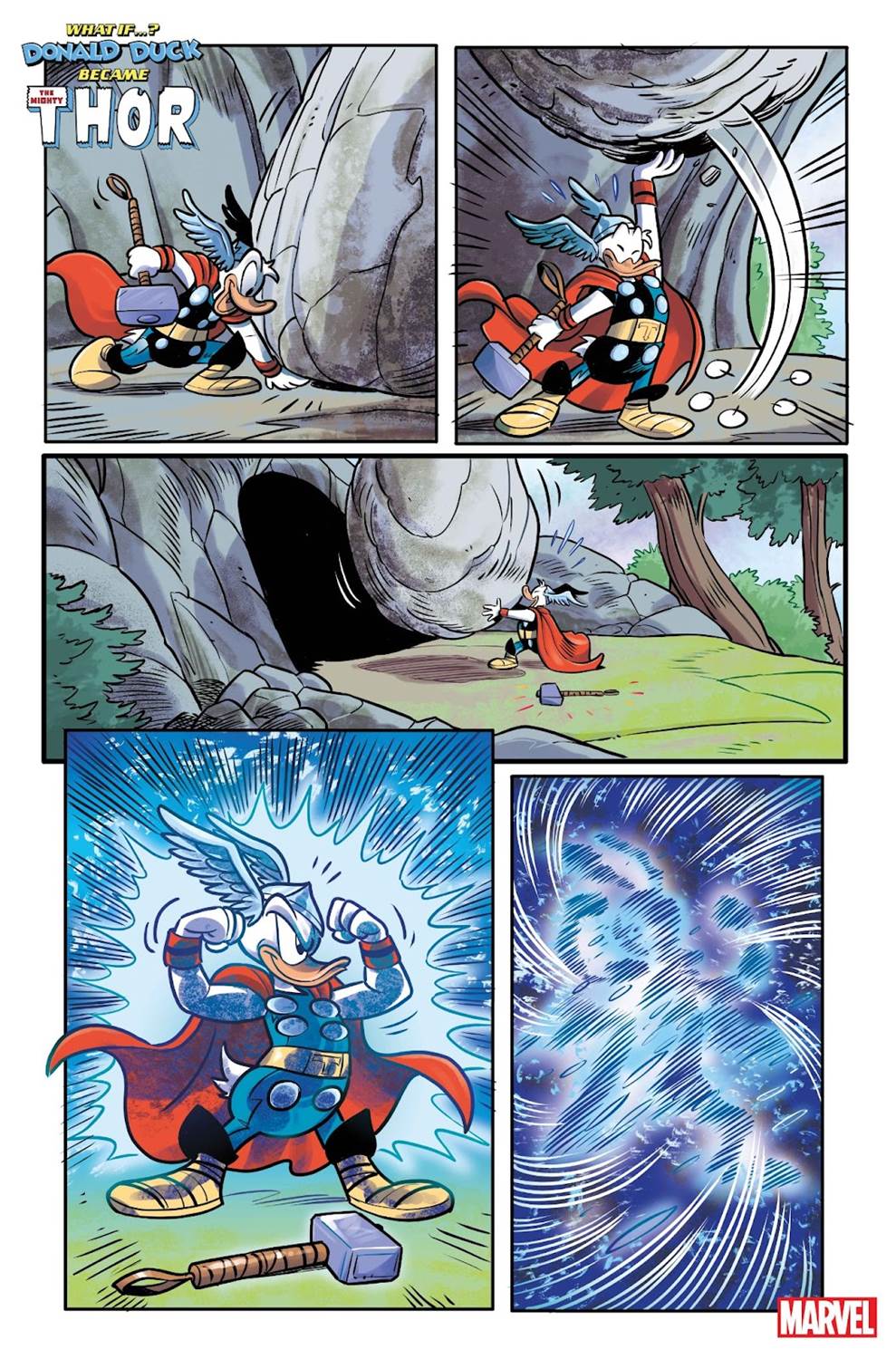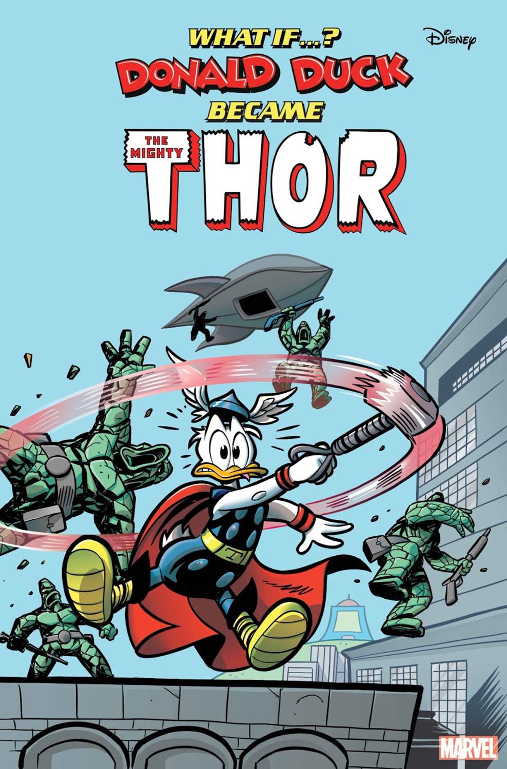 - Following Uncle Scrooge and the Infinity Dime #1 and this week’s Marvel & Disney: What If…? Donald Duck Became Wolverine #1, the Marvel mythos continues to be infused with Disney magic next month in MARVEL & DISNEY: WHAT IF…? DONALD DUCK BECAME THOR #1! Today, fans can see all the covers for this highly-anticipated issue and check out a sneak peek!