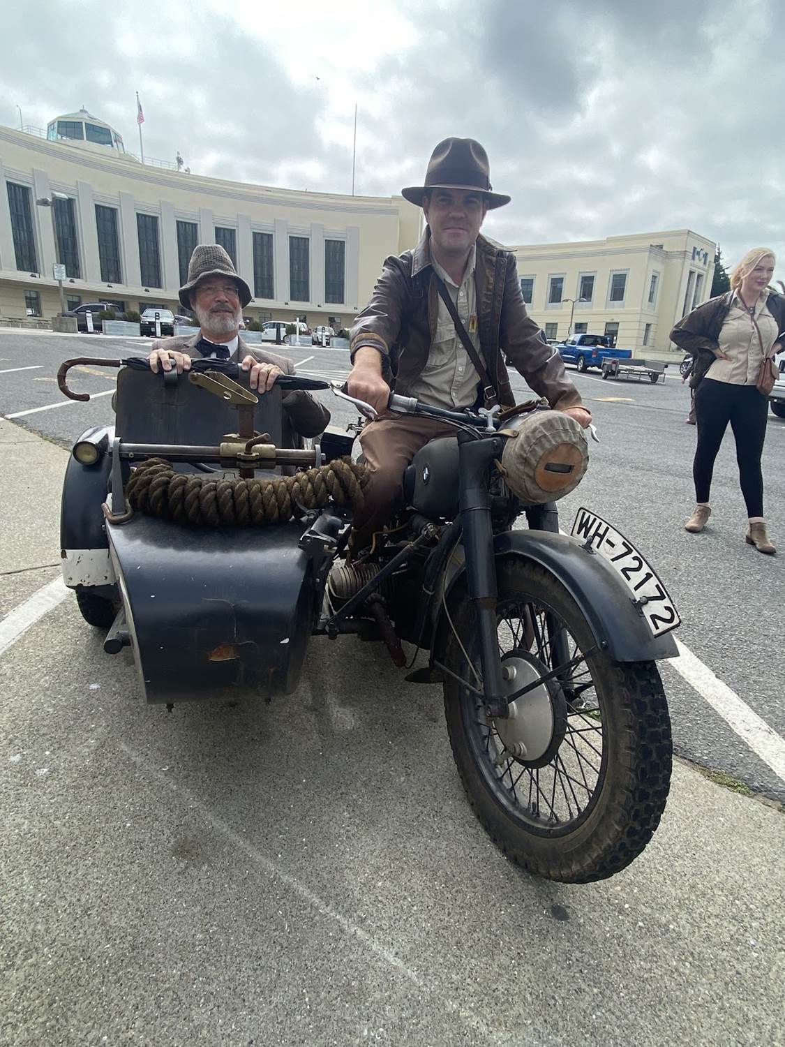 Many of us took photos and even cracked our whips in a grassy area that was nearby, but the highlight of this spot was one fan brought a motorcycle that was used in Last Crusade. I was thrilled to seize this moment to take a photo with “Dad". One member happened to have a motorcycle license and gave us fellow Indy fans an opportunity to ride with him in the Henry Jones Sr. (Sean Connery) seat! It was such a thrilling way to start an incredible weekend.