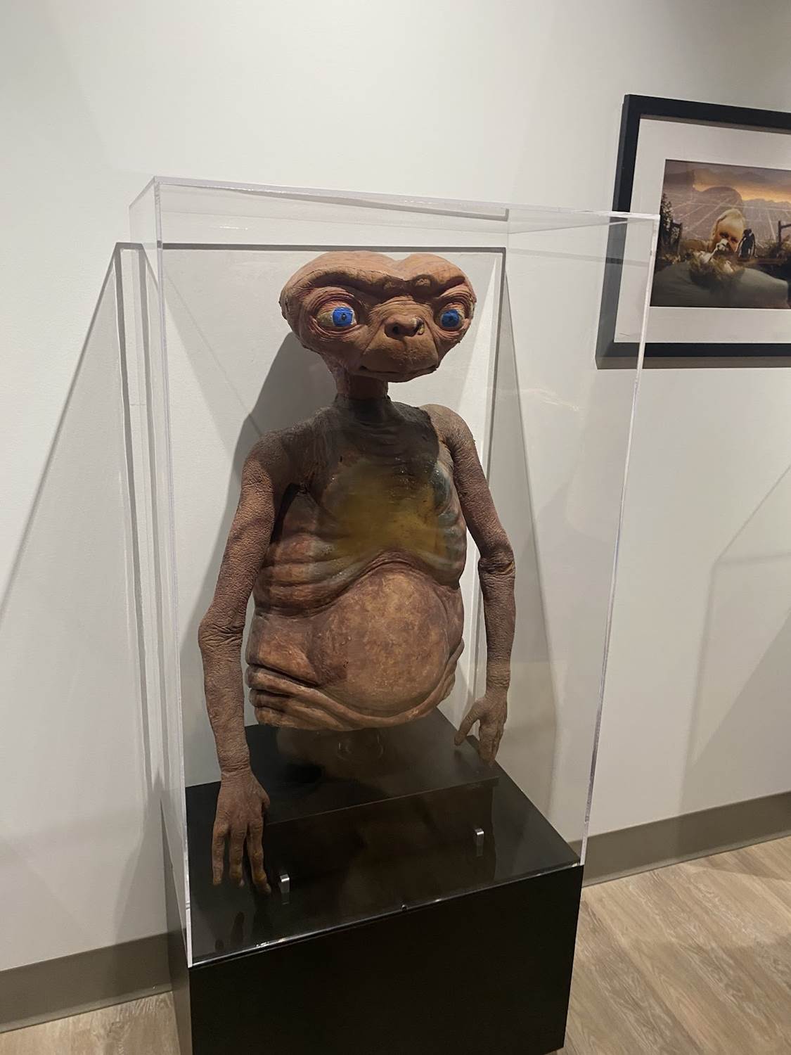We got some footage pics/video of the main office which included a statue dedicated to King Kong special effects artist Willis H. O’Brien. After the office, we were told that video wasn’t allowed and that only still pictures were allowed. Once told that, we were given a special tour of the entire building which included props not just from every Star Wars project over the decades, not just from all five Indiana Jones movies (which there were plenty) but also of many of the movies “Industrial Light and Magic" has worked on over the years, including E.T. The Extraterrestrial, Back To The Future, The Rocketeer, Terminator 2: Judgement Day, Jurassic Park, The Mummy, and Pirates Of The Caribbean just to name a few. I was particularly thrilled to get a picture with the props from Who Framed Roger Rabbit, particularly a picture with steamrolled Judge Doom, which was once reported on social media as hanging next to the bathroom. He’s since been moved next to some other props from the movie. This lifelong movie buff couldn’t get enough of the place. We even had an opportunity to shop at the company store, which I couldn’t pass up the opportunity to buy a limited “Marshall College" shirt which was only sold here.