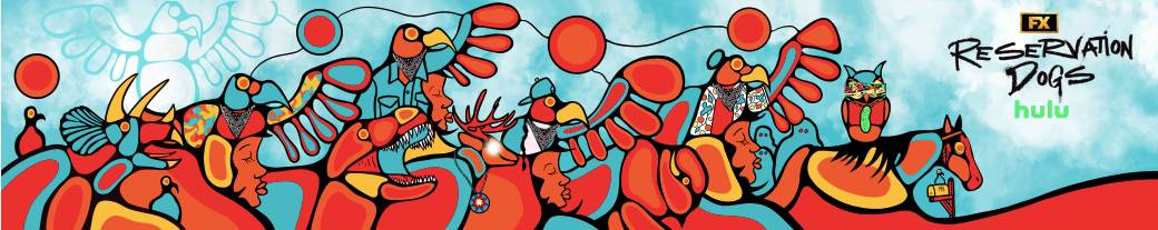 In celebration of Native American Heritage Month, and on the heels of the critically acclaimed series finale of FX’s award-winning series Reservation Dogs, Hulu has engaged Anishinaabe artist Blake Angeconeb to create artwork embodying the spirit of the show, which can be seen in a variety of placements throughout the month.