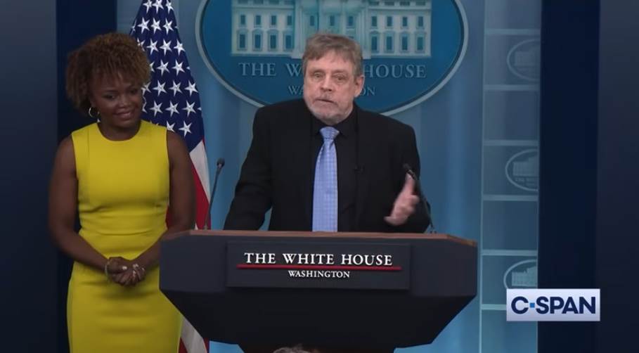 - Hamill, who of course portrays Luke Skywalker in several Star Wars films, joined White House Press Secretary Karine Jean-Pierre at the top of her daily briefing.