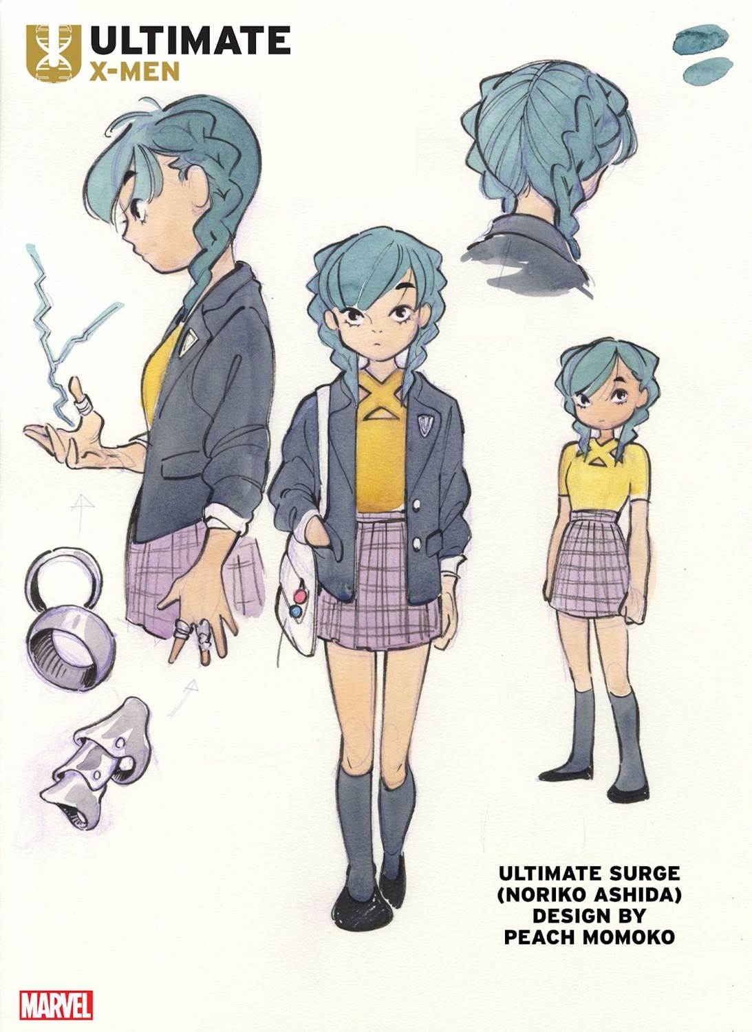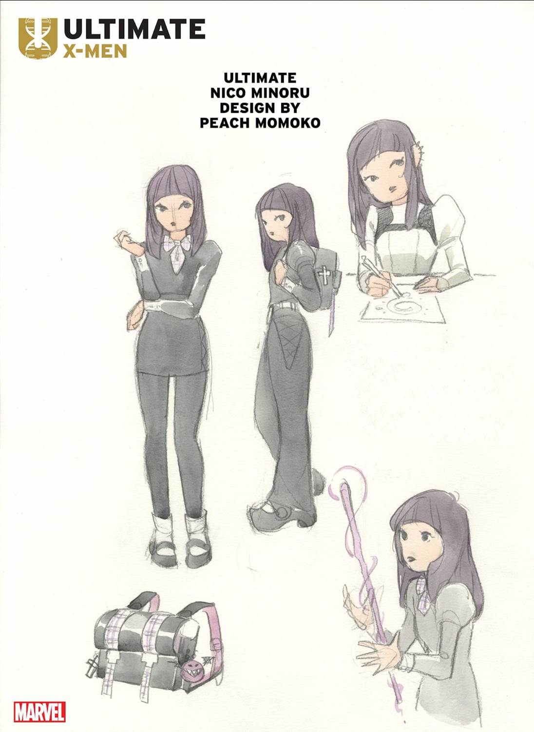 - Hisako and Mei’s classmate, Nico, has figured out that these two girls possess unusual abilities…but they’re not the only ones! Hisako’s world gets a whole lot bigger in "Ultimate X-Men #4" with exciting versions of existing Marvel heroes like fan-favorite X-Man Surge and Nico Minoru of the Runaways. Momoko will also introduce brand-new original mutant characters named Mori and Natsu. Fans can see Momoko’s design sheets for all four characters debuting in "Ultimate X-Men #4" while the issue’s cover offers a peek at yet another upcoming character to be introduced in the near future.