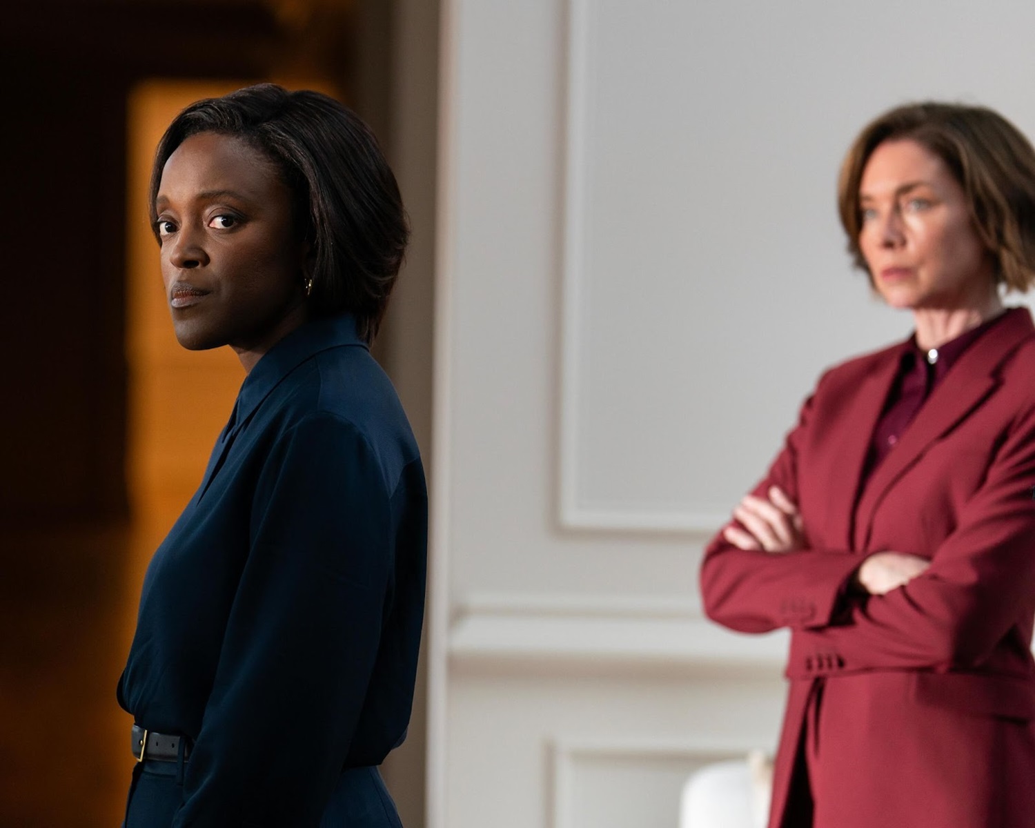 In the present, Samantha hopes that Gabriela is right about Collins and then gives her a small compliment that Gabriela says is the nicest thing she has ever said to her. Samantha then invites Collins to follow her, and they talk. Collins says that everyone takes directions from her, and when she asks if Collins knows why her security detail calls her Sinatra, he says he assumed it was because of the hats she wore. (In reality, it’s because she is the Chairman of the Board.)