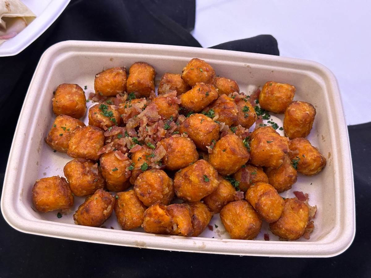 - Walking nachos with chili cheese and jalapenos will be available at the Red Rock Grill, as well as sweet potato tots complemented with maple cinnamon butter and Applewood bacon.