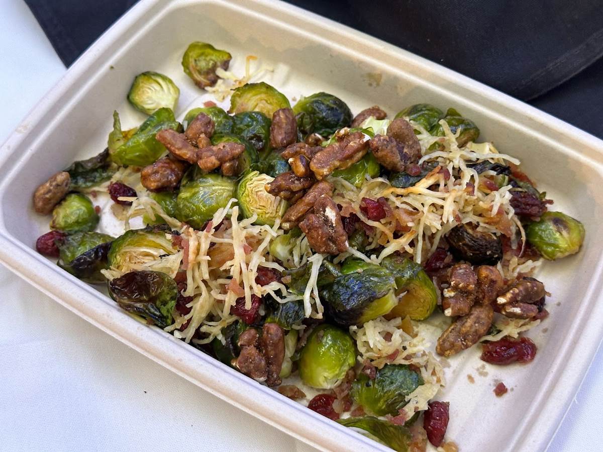 - Roasted Brussels sprouts with cranberries, pecans, parmesan and Applewood bacon