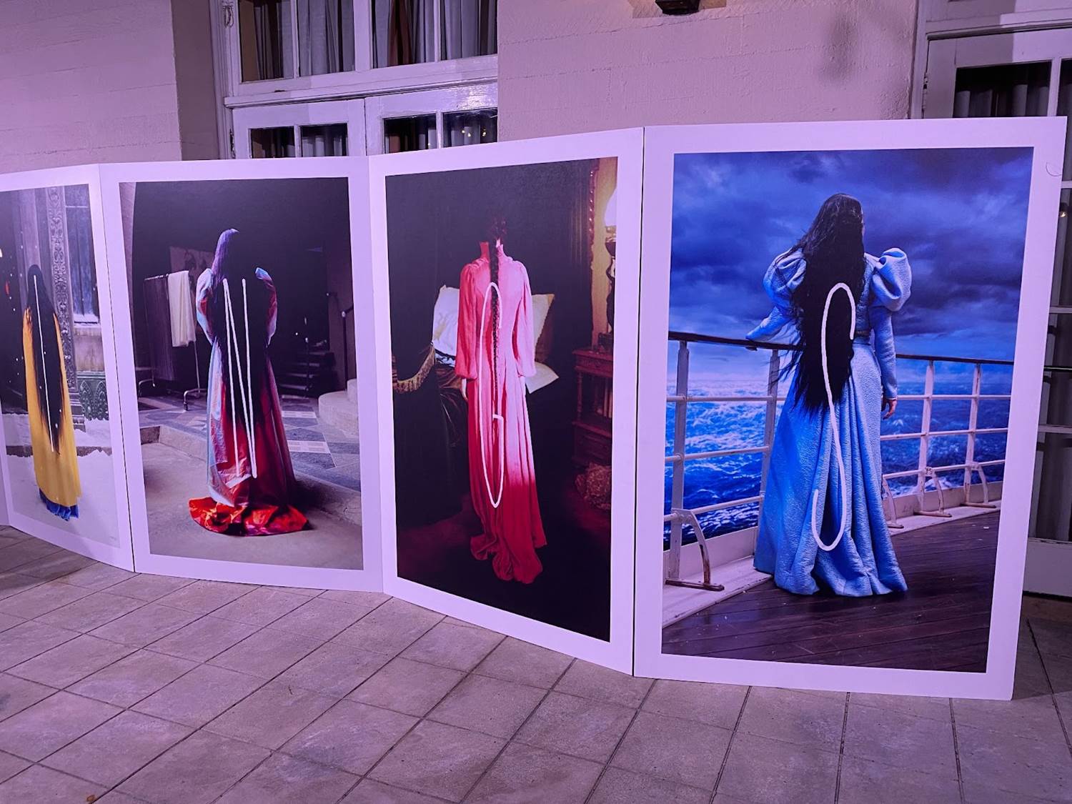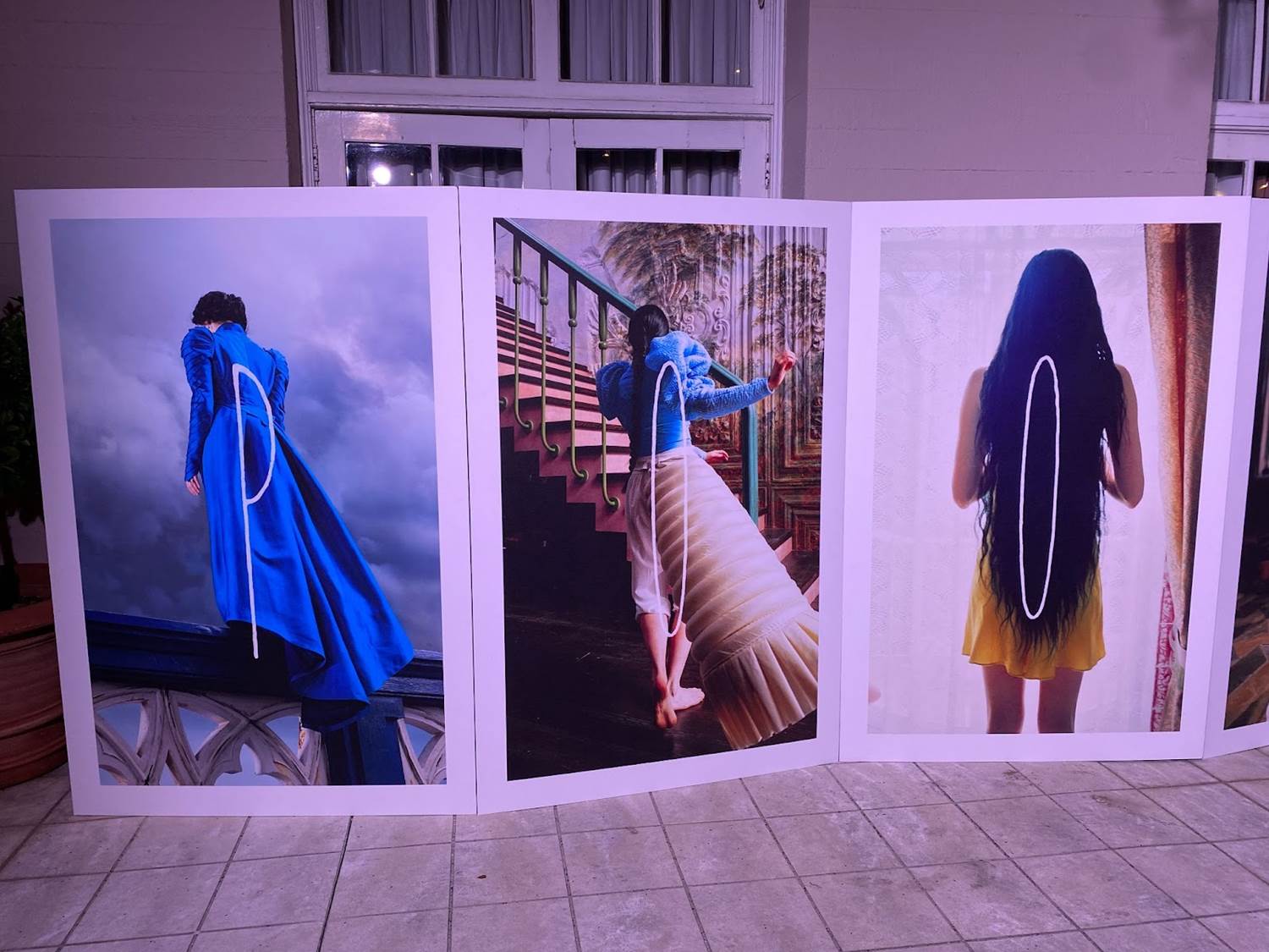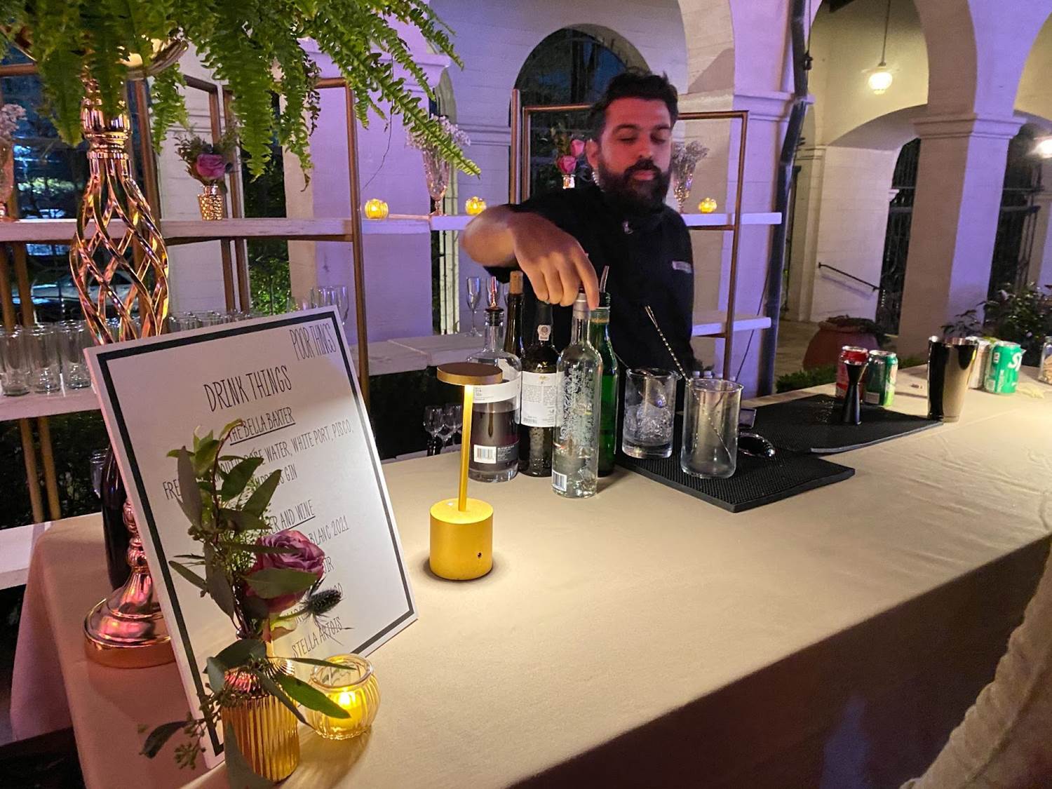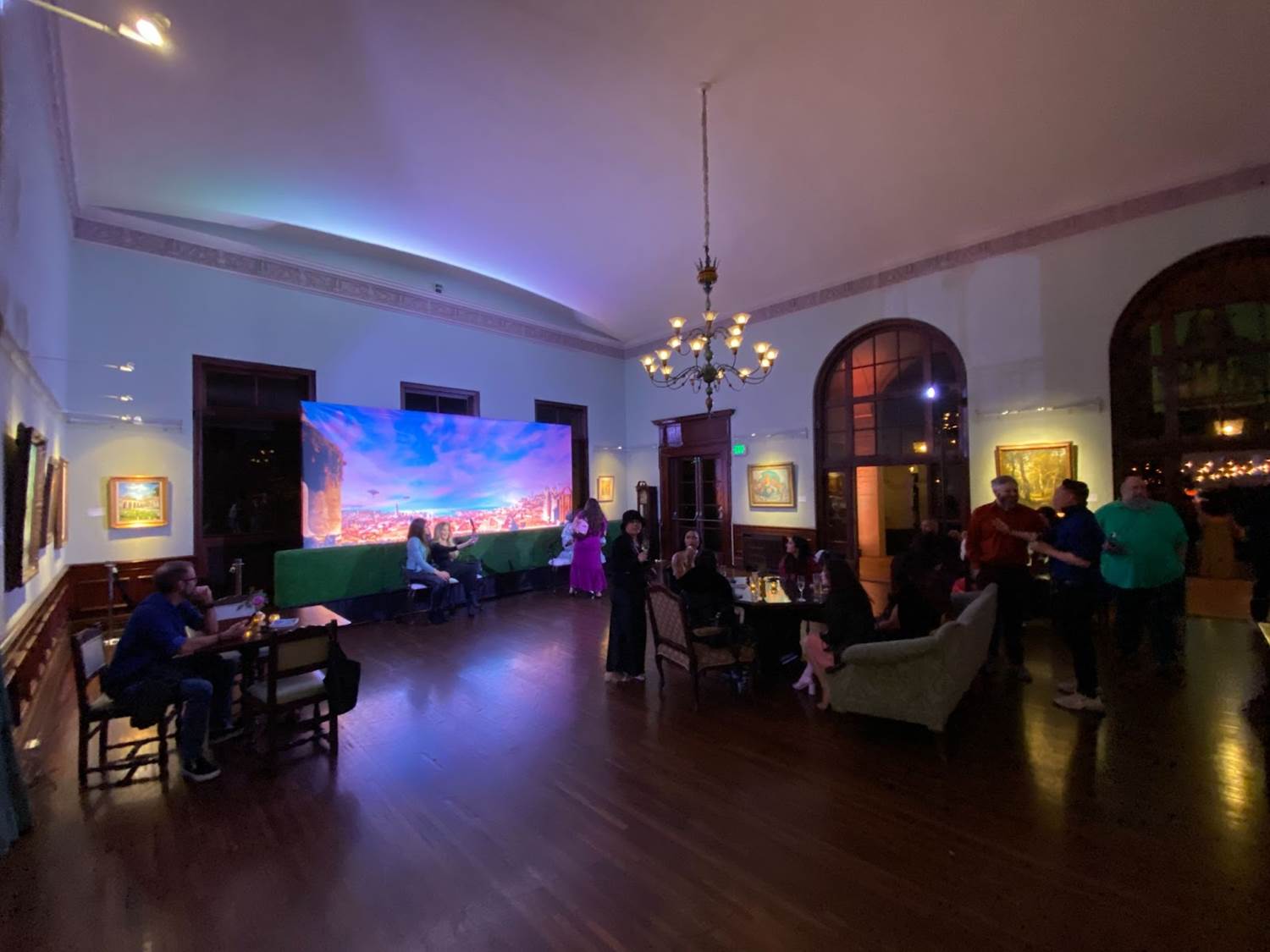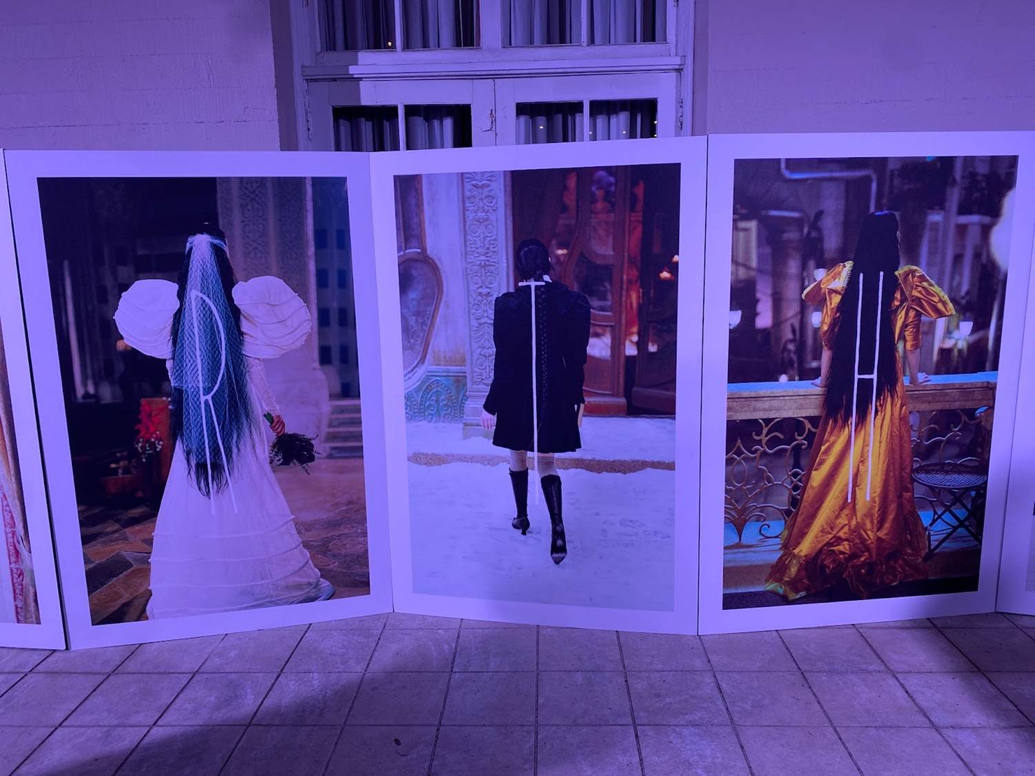 Outside in the extremely pleasant and relaxing courtyard area, there was a big projected image of the Poor Things billboard, plus a giant fold-out photo opportunity showing off more of the amazing costumes from the movie. Plus, bartenders served a variety of beer and wine, along with a special signature cocktail themed to Bella Baxter herself.