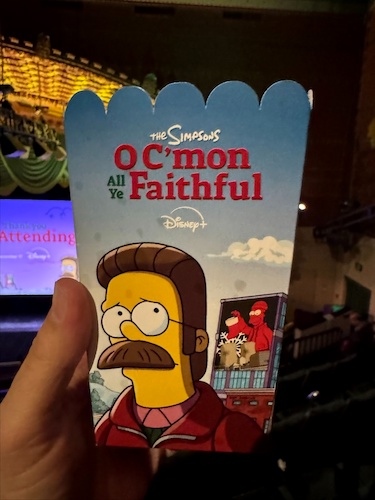 Yesterday evening in Hollywood, California, Disney+ partnered with the famous El Capitan Theatre on Hollywood Boulevard to host a World Premiere screening event for the new The Simpsons holiday special entitled “O C’mon All Ye Faithful". Fans had the opportunity to attend this premiere via D23: The Ultimate Disney Fan Club, and below are my photos and video from the experience.