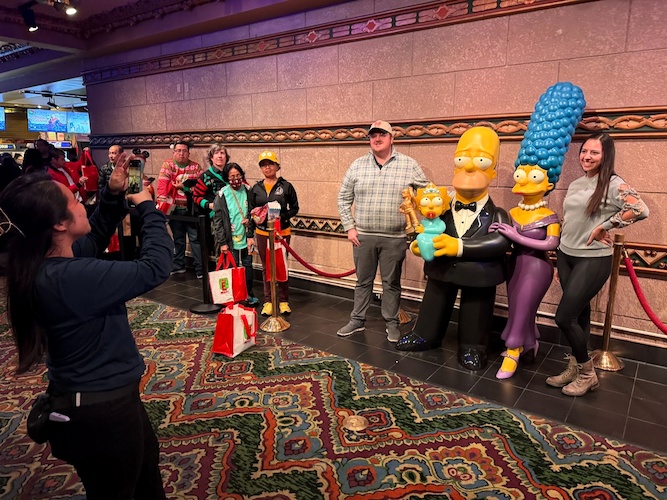 Down in the main lobby after the show, we found another photo op featuring statues of Homer, Marge, and baby Maggie Simpson decked out in their World Premiere best.