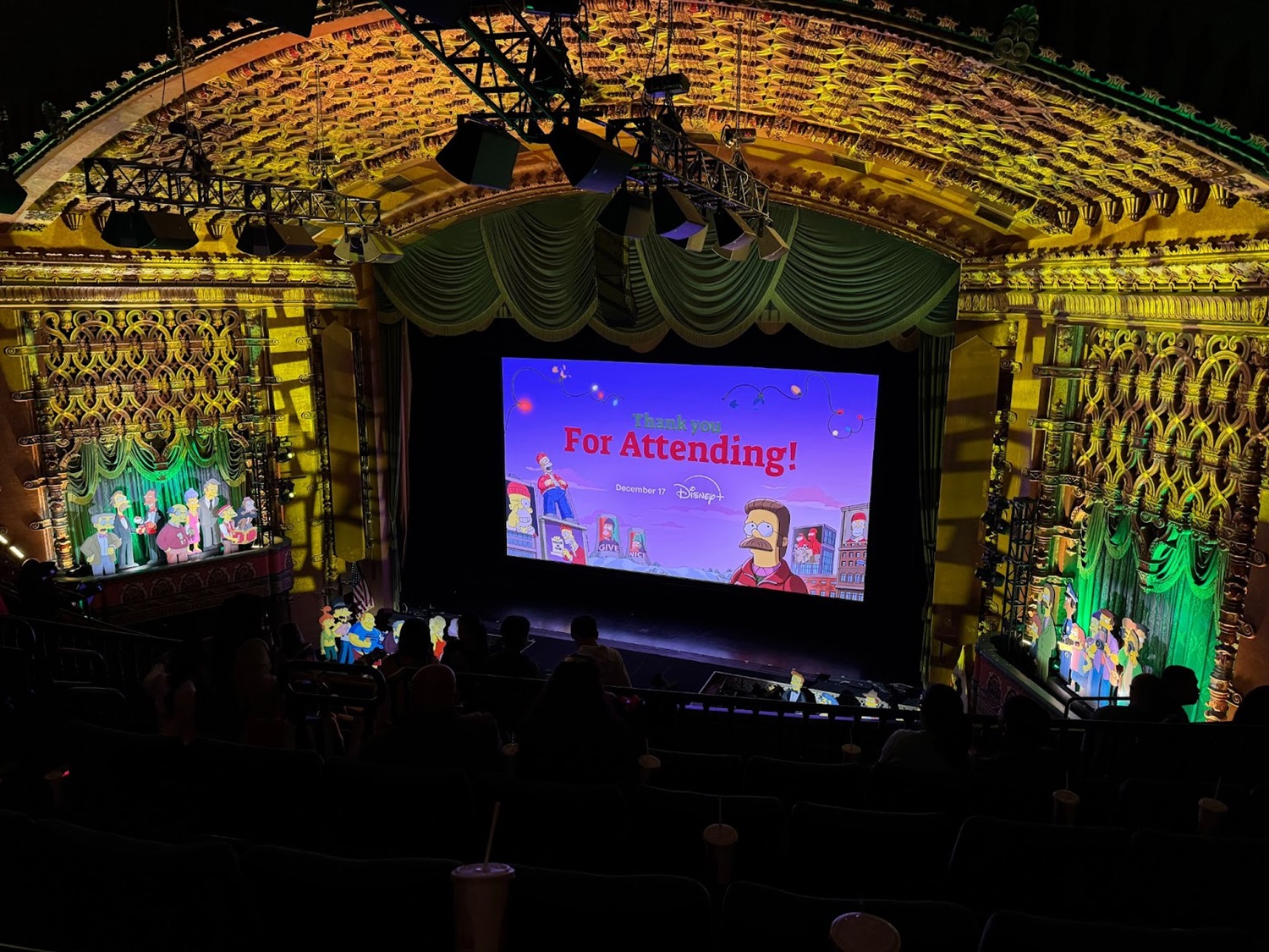 Yesterday evening in Hollywood, California, Disney+ partnered with the famous El Capitan Theatre on Hollywood Boulevard to host a World Premiere screening event for the new The Simpsons holiday special entitled “O C’mon All Ye Faithful". Fans had the opportunity to attend this premiere via D23: The Ultimate Disney Fan Club, and below are my photos and video from the experience.