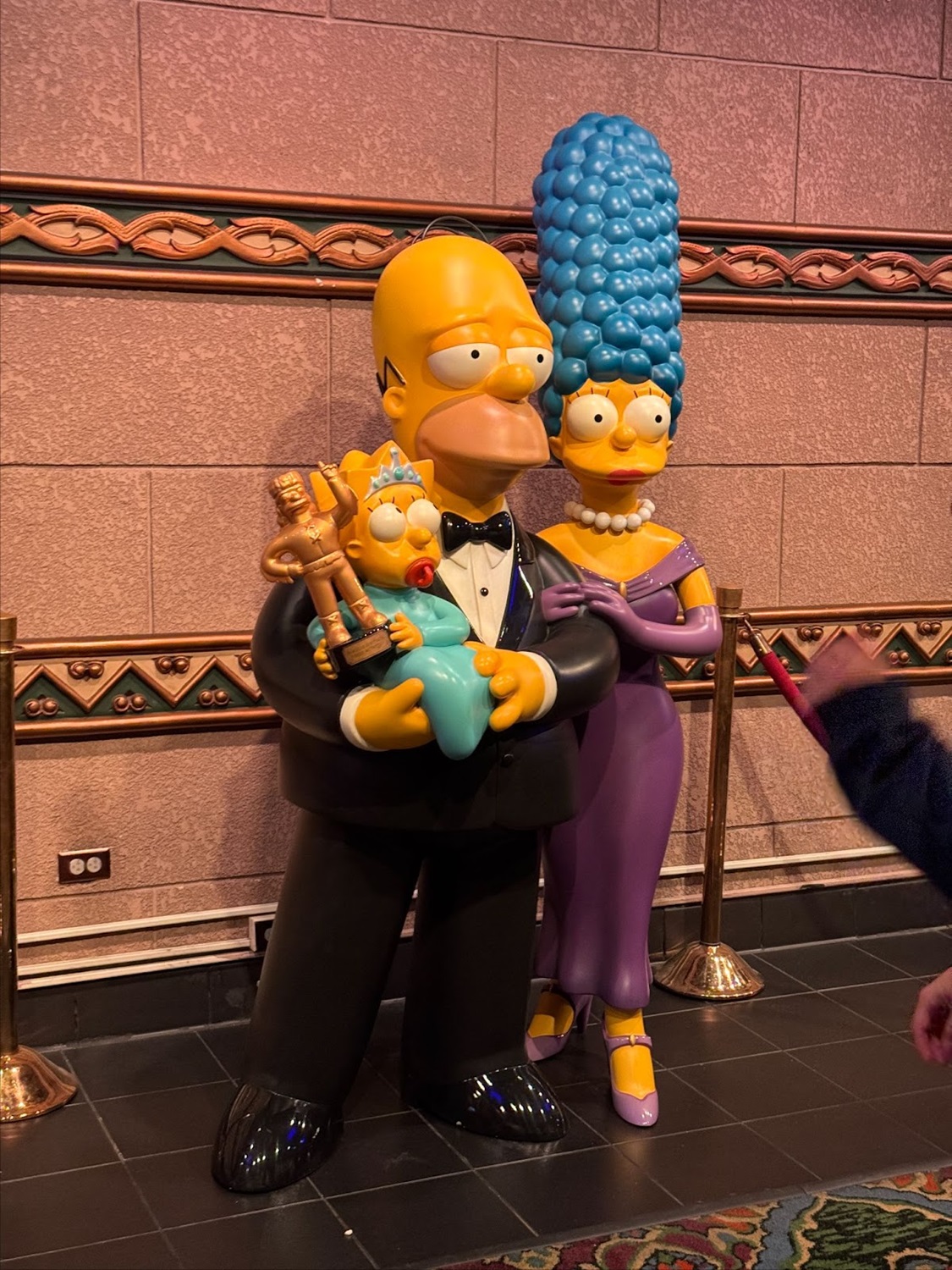 Down in the main lobby after the show, we found another photo op featuring statues of Homer, Marge, and baby Maggie Simpson decked out in their World Premiere best.