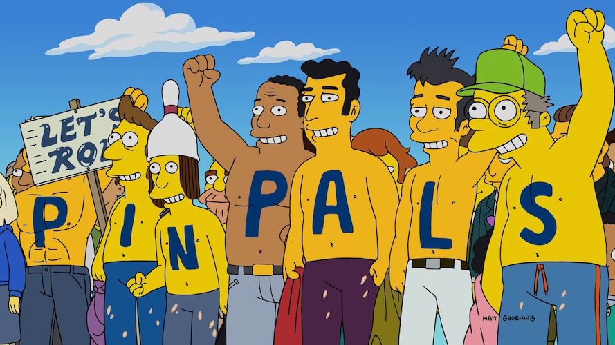 Longtime fans of The Simpsons will recall one of the best episodes from the in-its-heyday seventh season– entitled “Team Homer"-- which established Homer Simpson’s bowling team the Pin Pals. Well apparently the Pin Pals are still around, though its only two original members are Homer himself (voiced, as always, by Dan Castellaneta) himself and bartender Moe Szyslak (Hank Azaria). Joining them now are Homer’s hyper-religious neighbor Ned Flanders (Harry Shearer), coworker Carl Carlson (Alex Désert), and a Portuguese man named Fausto (also Désert) previously seen in the season 18 episode “The Wife Aquatic" and last year’s “The Tipping Point." We see at the beginning of this installment that Mr. Burns is proud of having been on the team “before it was cool," but there’s no mention of the other two former members Otto Mann, Dan Gillick, and Apu Nahasapeemapetilon, the latter of which has been retired from the show for reasons it’s best not to get into here.
