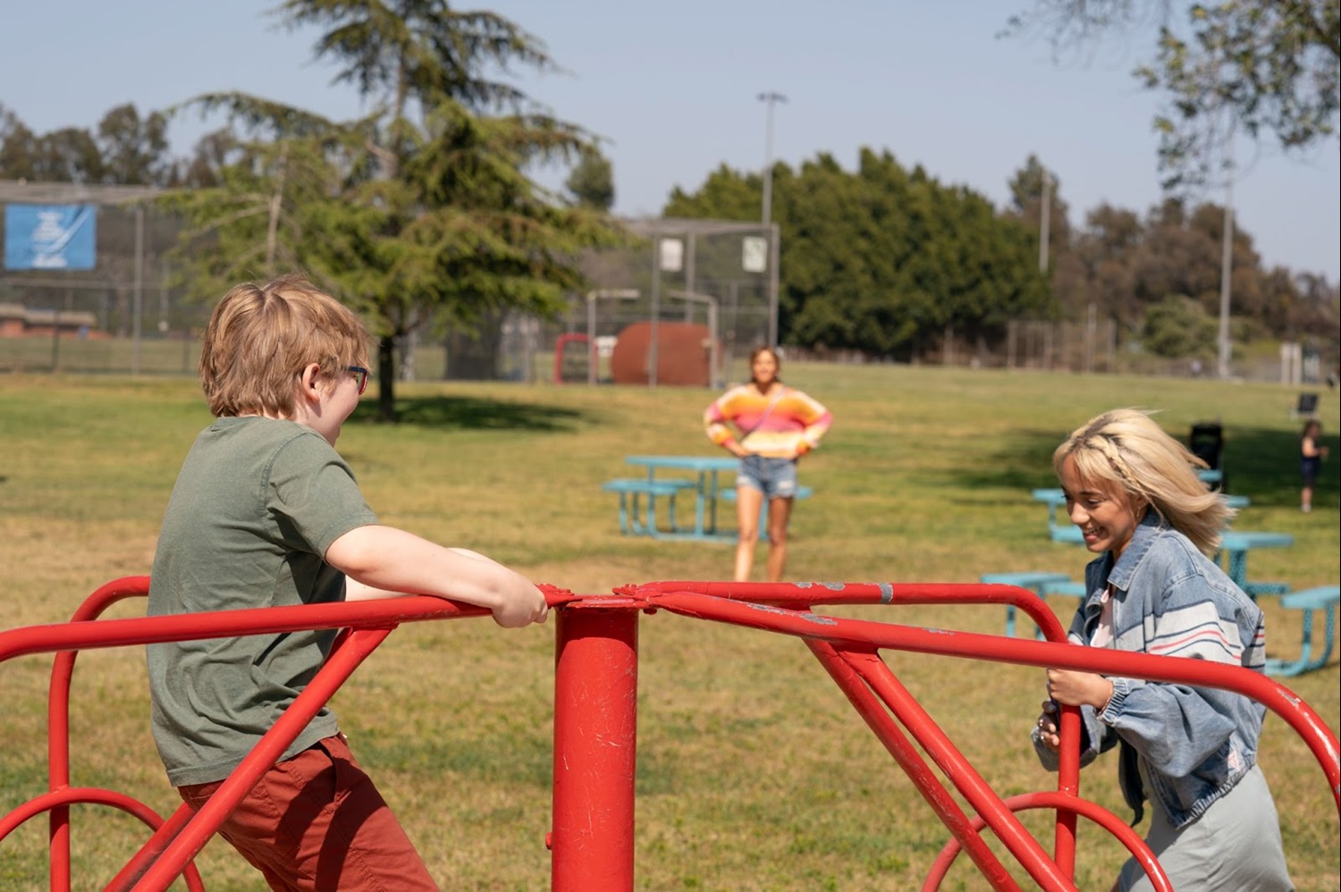 Morgan goes back to the park with her kids. Elliot is in a funk about the situation with Finn, and Ava is buried in her phone. Morgan excuses herself when she sees Jeff, bringing a folder over to him. She gives him some of Chuck’s photos, which show how much fun Ward had with Tara at the park. It makes Jeff emotional because, as a working parent, he rarely gets to see those joyful moments in his son’s life. Morgan looks over at her kids and sees that Elliot is on the spinner as Ava spins him around, the way they used to do when they were younger. To her delight, when Ava gets a text, she chooses to ignore it, staying in the moment to cheer up her brother.
