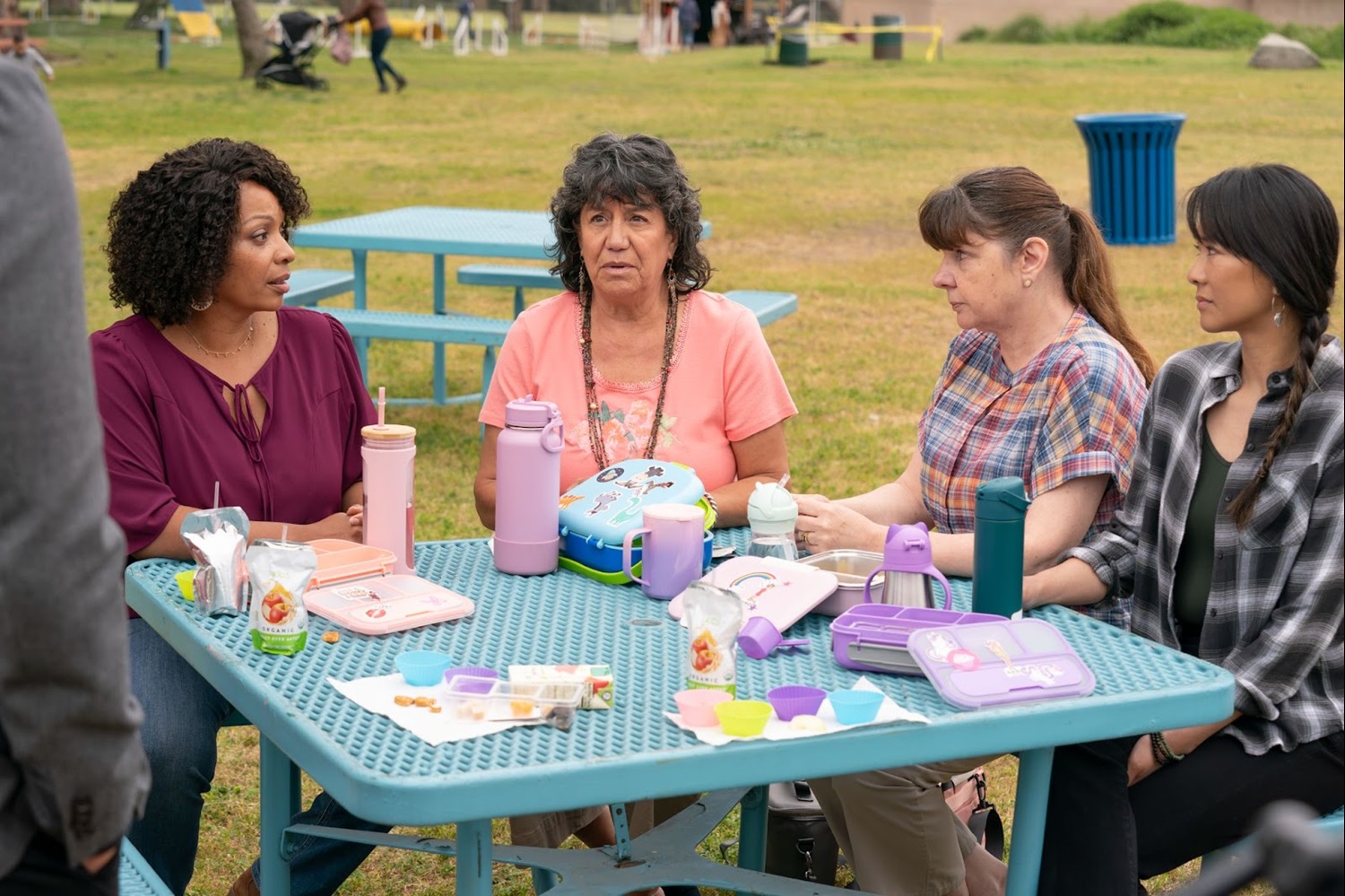 That night, Morgan makes dinner while talking to her son Elliot (Matthew Lamb), who needs advice on what to get a classmate for his birthday party. Morgan is annoyed at Ava (Amirah J), who sits next to her boyfriend Ryder (Hudson Macready) on the couch, texting with him instead of talking. They’re able to break through long enough for Ryder to suggest that Elliot get his friend a LEGO set, recalling a Toy Story 2 one he loved as a kid. Morgan tried to register for the Brenwood parent Facebook group but was rejected.