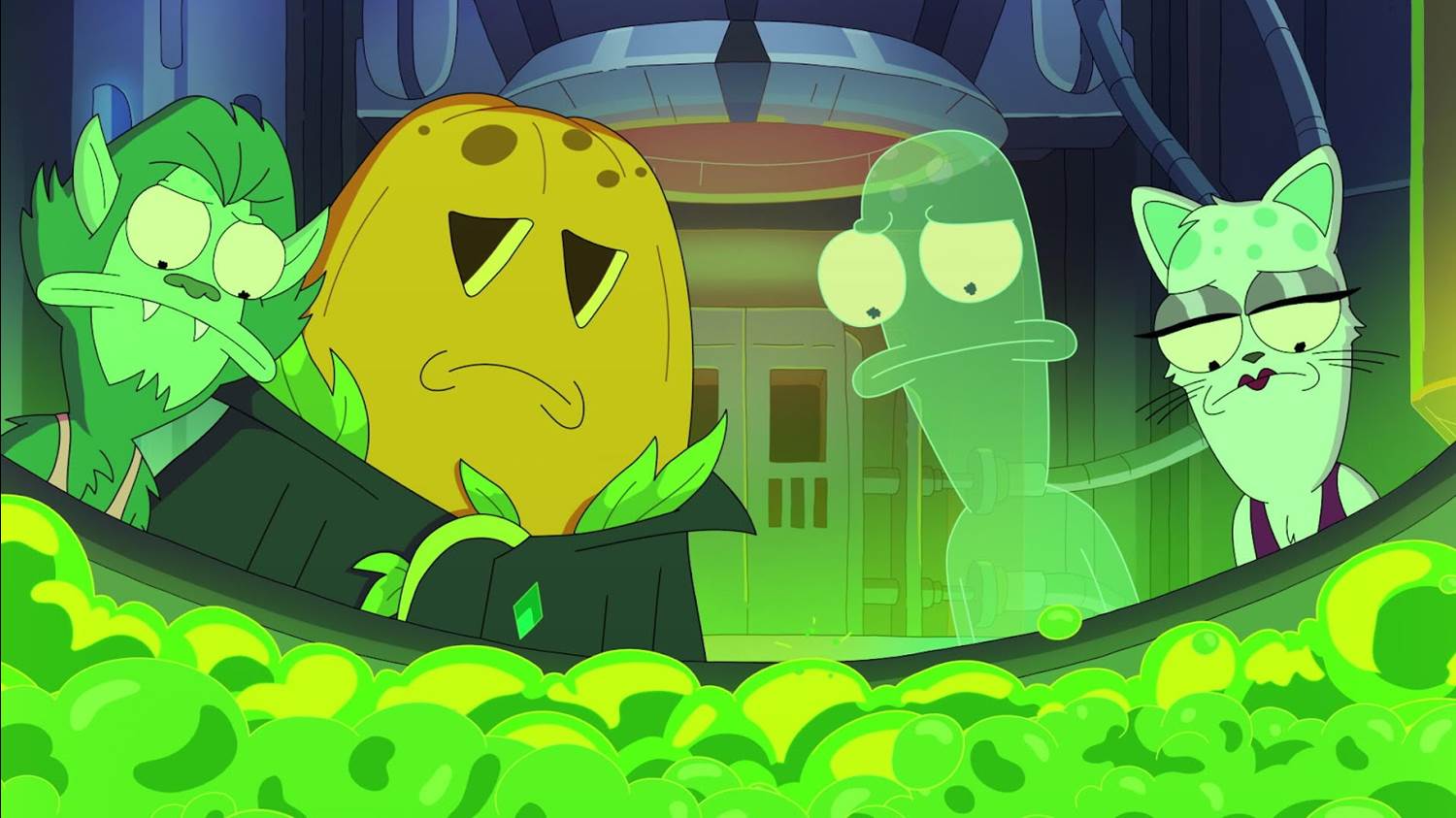 It’s the day before Halloween, and the “Solar Opposites"-- namely Korvo (voiced by Dan Stevens), Terry (Thomas Middleditch), Yumyulack (Sean Giambrone), and Jesse (Mary Mack)-- are distracted from seasonal spooky shenanigans by their efforts to get into a hoity-toity country club called Fancington Pines. They are shown around by an admissions agent (guest star Peyton Crim from Law & Order: Special Victims Unit) who tells the aliens that the club is looking to expand its sci-fi diversity, although the capital-A Alien from the movie Alien and the Klingon villain Chang from Star Trek VI: The Undiscovered Country are somehow already members. But when the agent says that the Solar Opposites’ interview for admission will be “tomorrow" (meaning the day of Halloween), our protagonists must quickly purge all their love of the holiday– except Korvo, who characteristically doesn’t really care for it– from their lives in order to fit in at the no-nonsense club.