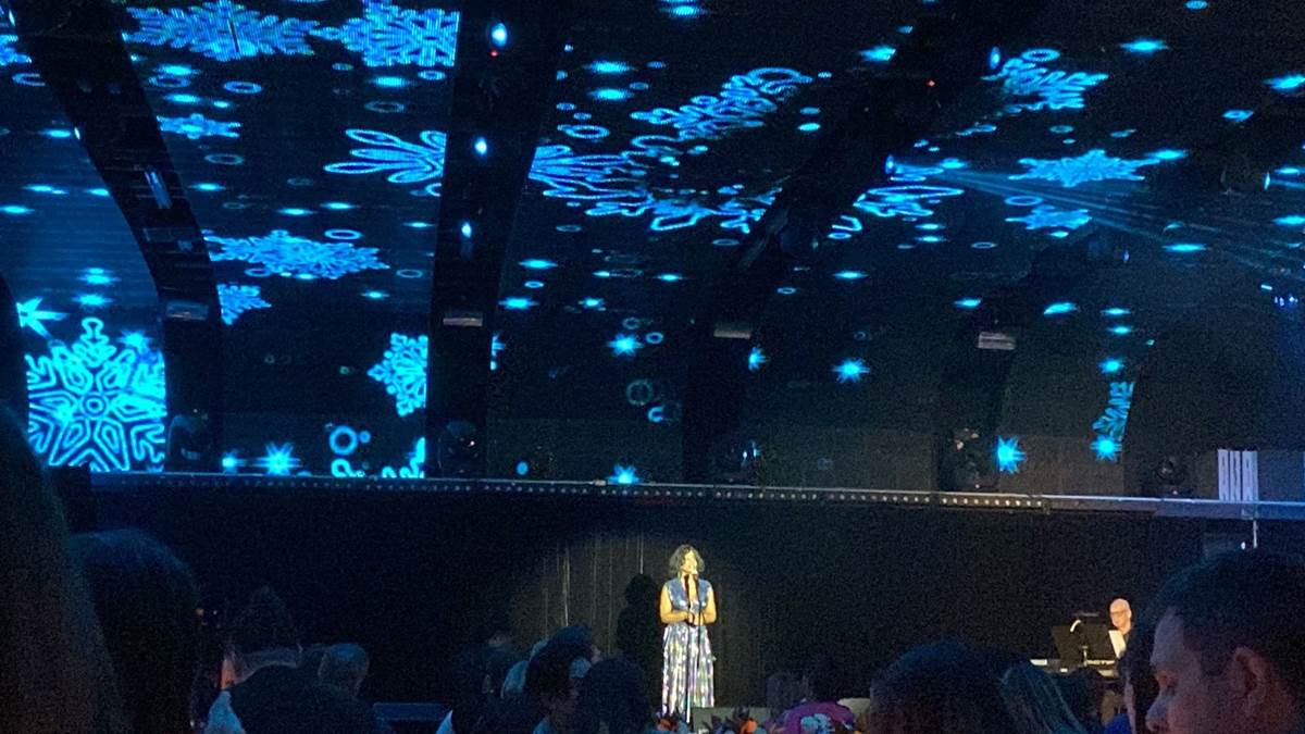 Then after the red carpet portion of the event wrapped up and attendees were ushered inside the venue, The Princess and the Frog voice actress Anika Noni Rose (AKA Princess Tiana) performed a song to warm up the crowd before host Joel McHale (Community) took the stage. Then at the end of the evening, Anika returned to sing a holiday favorite.