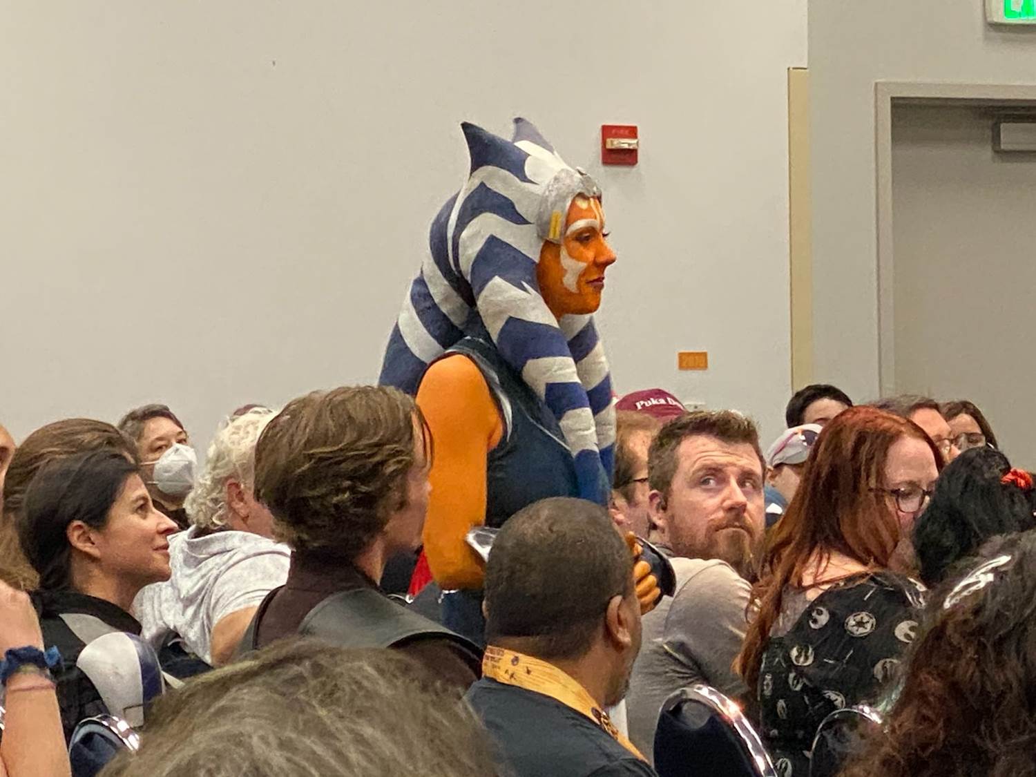 “I never did Her Universe by myself. It was a team," confirmed Ashley. Then they talked about the definition of a “hype friend," which is a term that she favors. “We are social creatures. We are meant to connect. We are meant to interact," explained Ashley. ““A hype friend is someone who has your back, who hypes you up and says you are great at this. I truly believe that everyone is born with a different gift. We spend so much time trying to be like one another, when actually we should be the best version of ourselves." At that point the Ecksteins asked members of the audience to share their specific gifts, and Ashley handed out pieces from the recent Ahsoka Tano Disney Parks / Her Universe merchandise collection as gifts to those who participated.