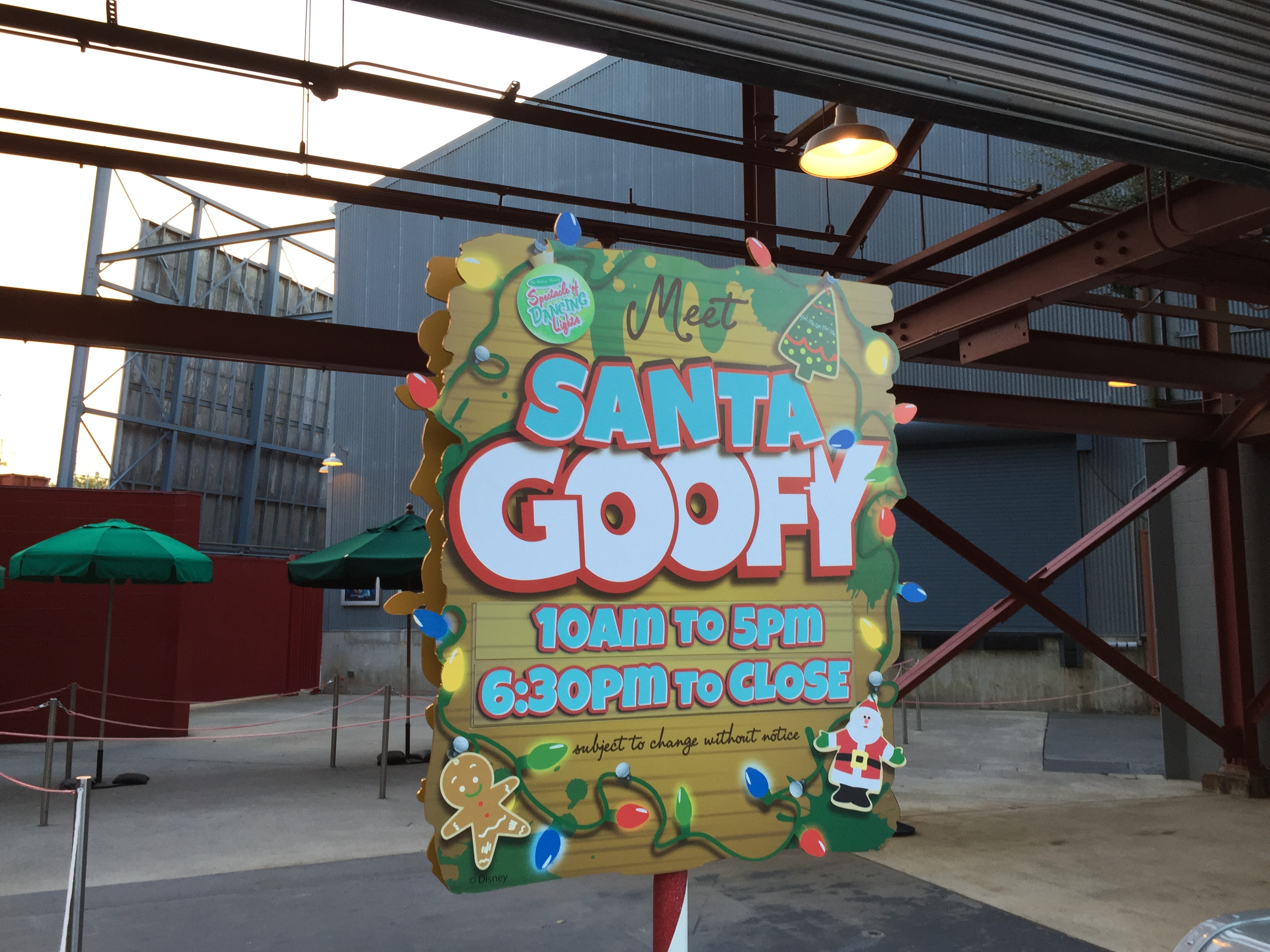 This year, Santa Goofy has been moved to the former entrance to the Backlot Tour.