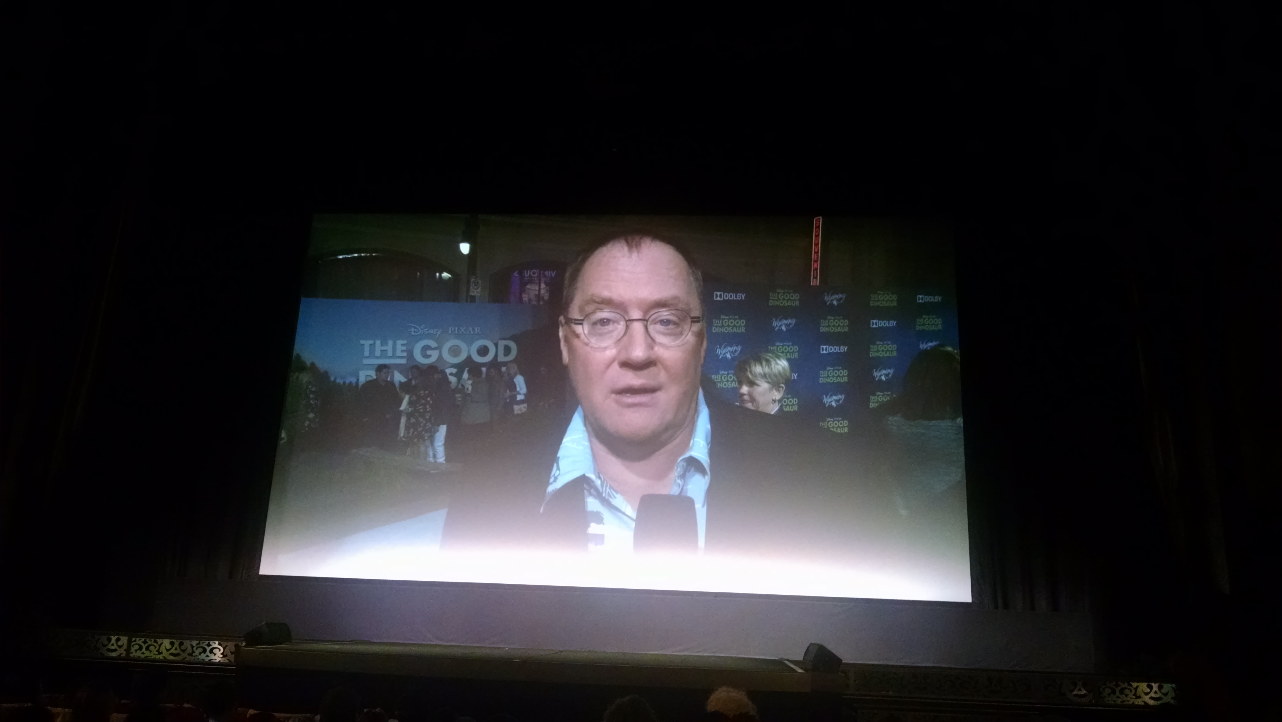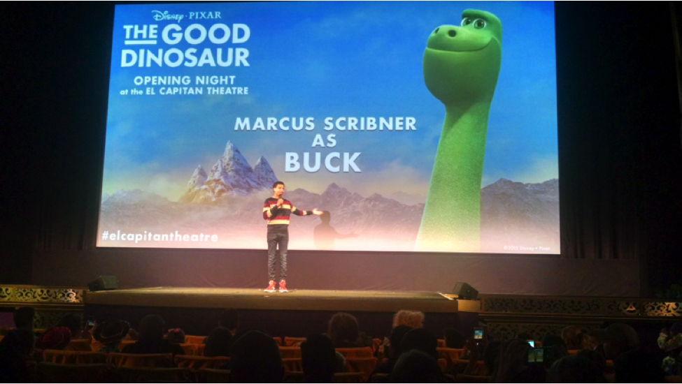Usually at the very first screening of a movie at the El Capitan, a celebrity makes an appearance. This night was no exception as Marcus Scribner, star of ABC’s Black-ish and voice of Buck came to the stage. He seemed quite enthusiastic about the project, exclaiming “I’m very excited to be able to show you this masterpiece!” and talking about how lucky we were to be among the first audience members to ever see the movie. Honestly, though, that introduction sort of paled in comparison to the video recording of John Lasseter at The Good Dinosaur premiere, welcoming us to this double-feature. Lasseter said he would let us be the judge if Pixar’s animation has improved over 20 years. He also stated, “While a lot has changed at Pixar over 20 years, the one thing that hasn’t changed is Pixar’s dedication to story,” managing to repeat his motto about how story is the most important thing at Pixar.