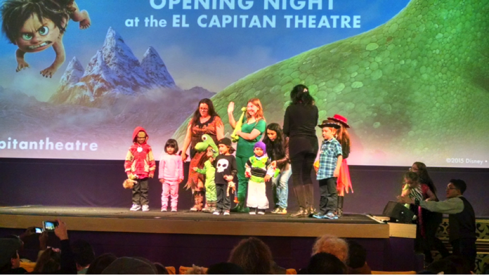 After a break following Toy Story, the El Capitan Theatre provided the magic it typically spreads, from organist Rob Richards playing the Disney catalog on the organ (including Pixar’s iconic “You’ve Got A Friend In Me”) to a costume showcase (where a bunch of little Woodys, Jessies, Buzzes, even a kid dress as Sid came to the stage) to raffle prizes which included Good Dinosaur gift bags, autographed posters and even some Luxo Jr balls.