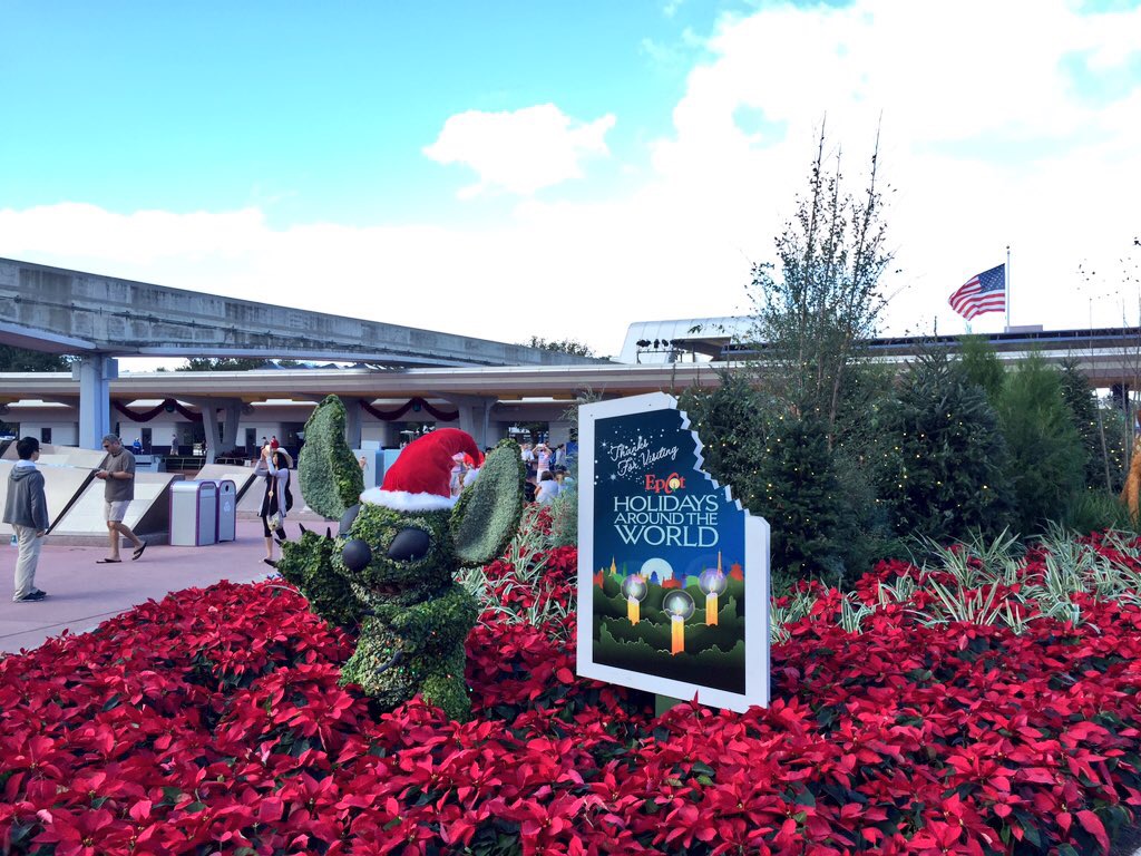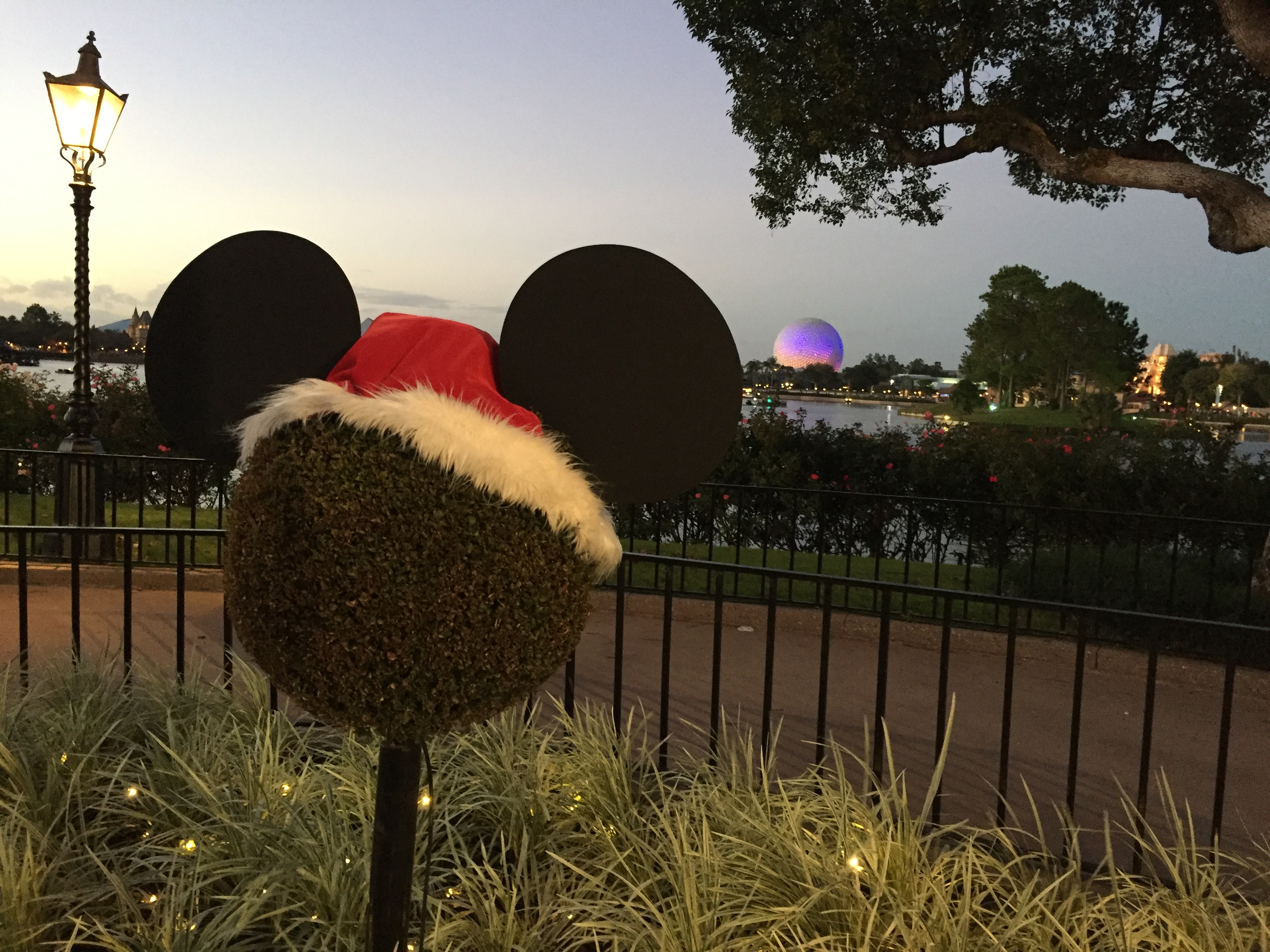 As guest head toward the World Showcase they are greeted by one of the most beautiful of Christmas Trees at Walt Disney World with ornaments from each of the pavilions around the lagoon.