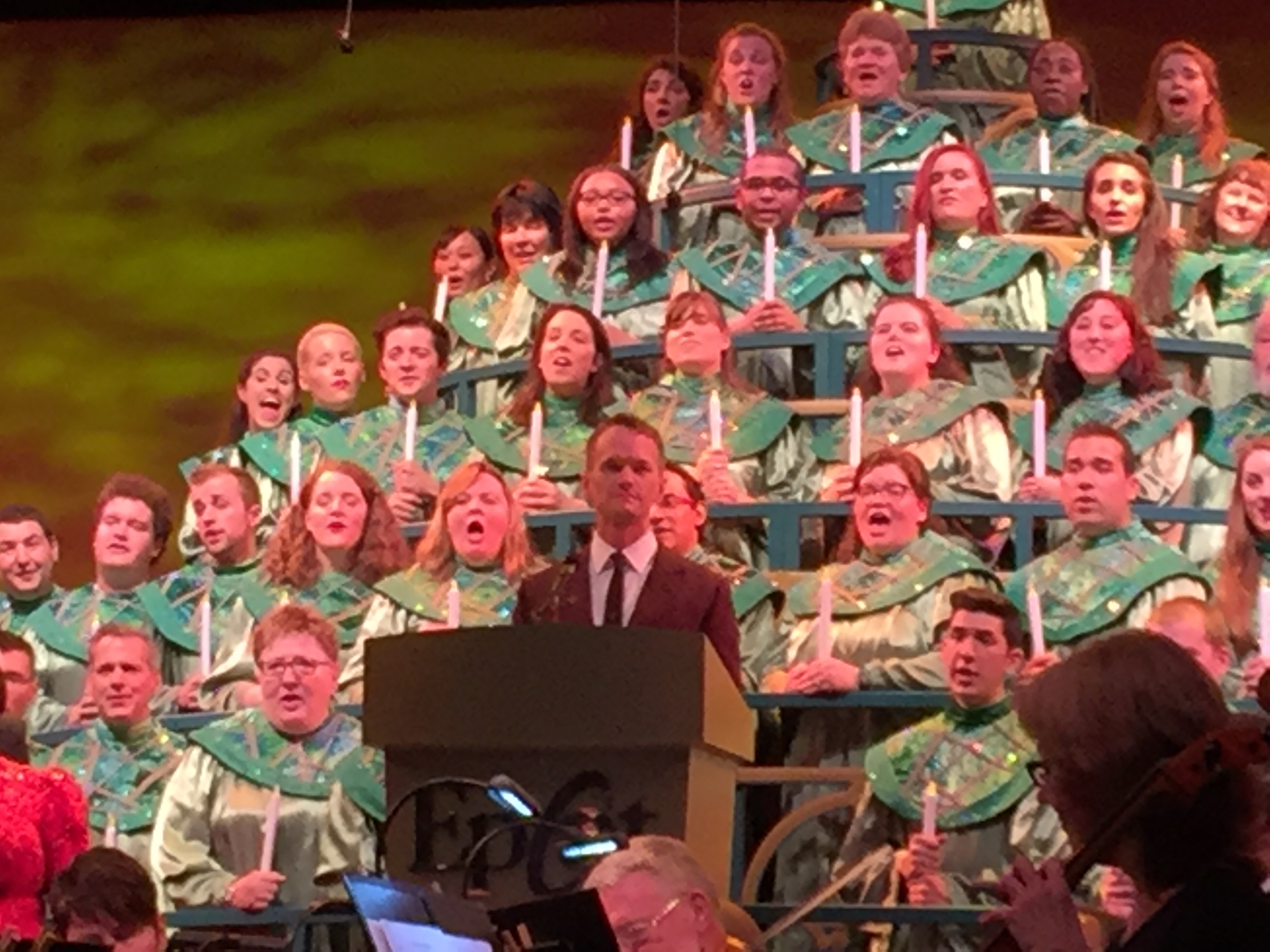 This years line up includes such esteemed talent as Whoppi Goldberg, Edward James Olmos, and of course Neal Patrick Harris all narrating the biblical tale of a savior born to a virgin in Bethlehem accompanied by local school and Disney Cast choirs, some of the Voices of Liberty, and a full orchestra.