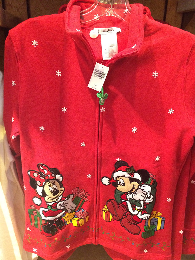 Holidays at the Disney Parks means many things: tasty food, special parades and entertainment, and, of course, tons of themed goods to buy. This pictorial will take a look at some of the seasonal merchandise found at the Disneyland Resort, specifically the apparel and the ornaments.