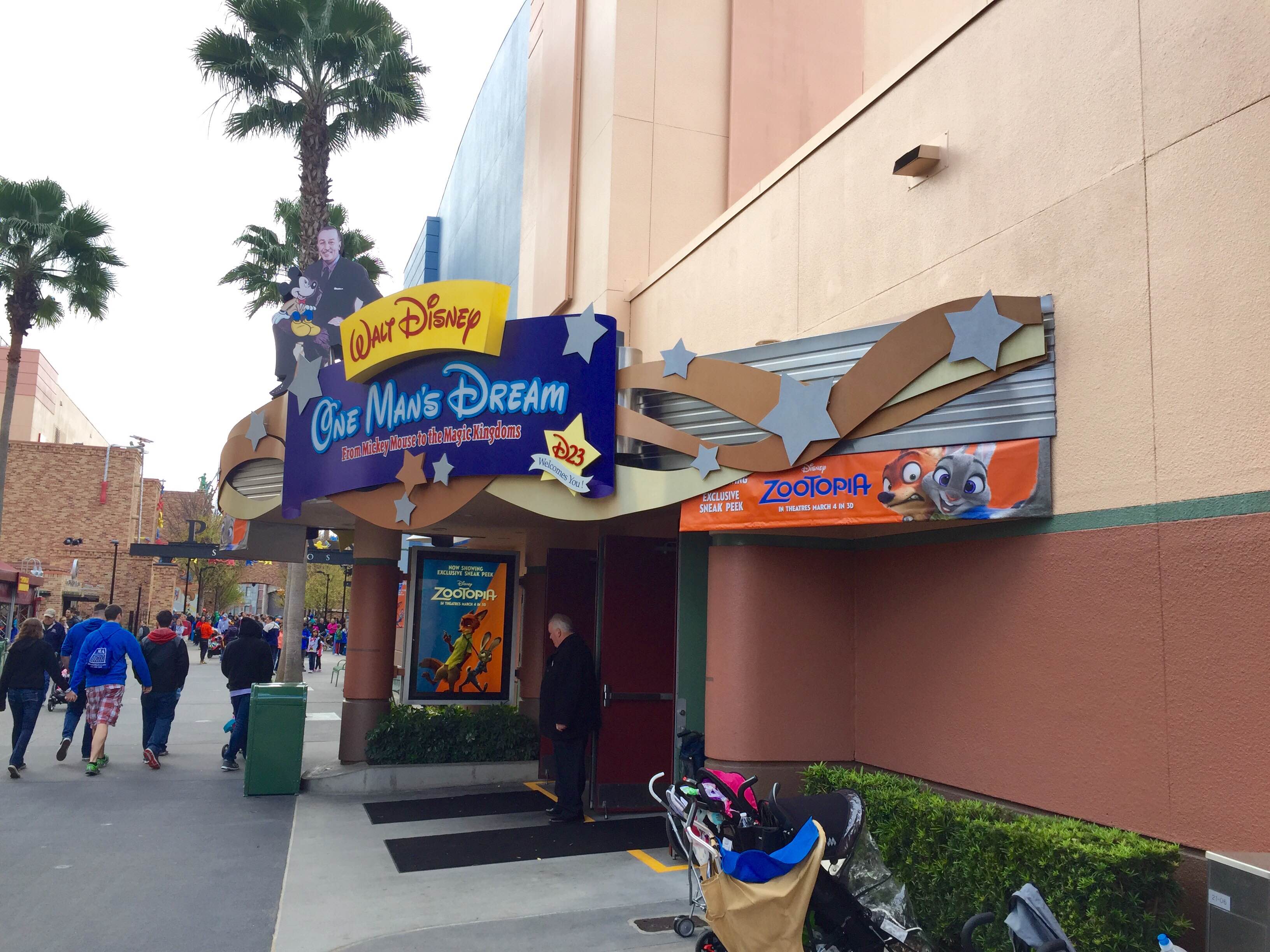 At Disney's Hollywood Studios the sneak peek is hosted in the theater of One Man's Dream. The theater traditionally shows a film about the life of Walt Disney but has recently hosted a sneak peek of The Good Dinosaur.