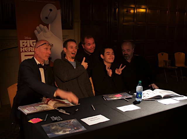 Downstairs, wristband holders got another exciting surprise. This evening, the meet and greet with Director Chris Williams also included Producer Roy Conli and voice talents Ryan Potter (Hiro) and Scott Adsit (Baymax)! All four of them were really awesome, and it was amazing getting the opportunity to talk with them about their work and take pictures. What a friendly bunch!