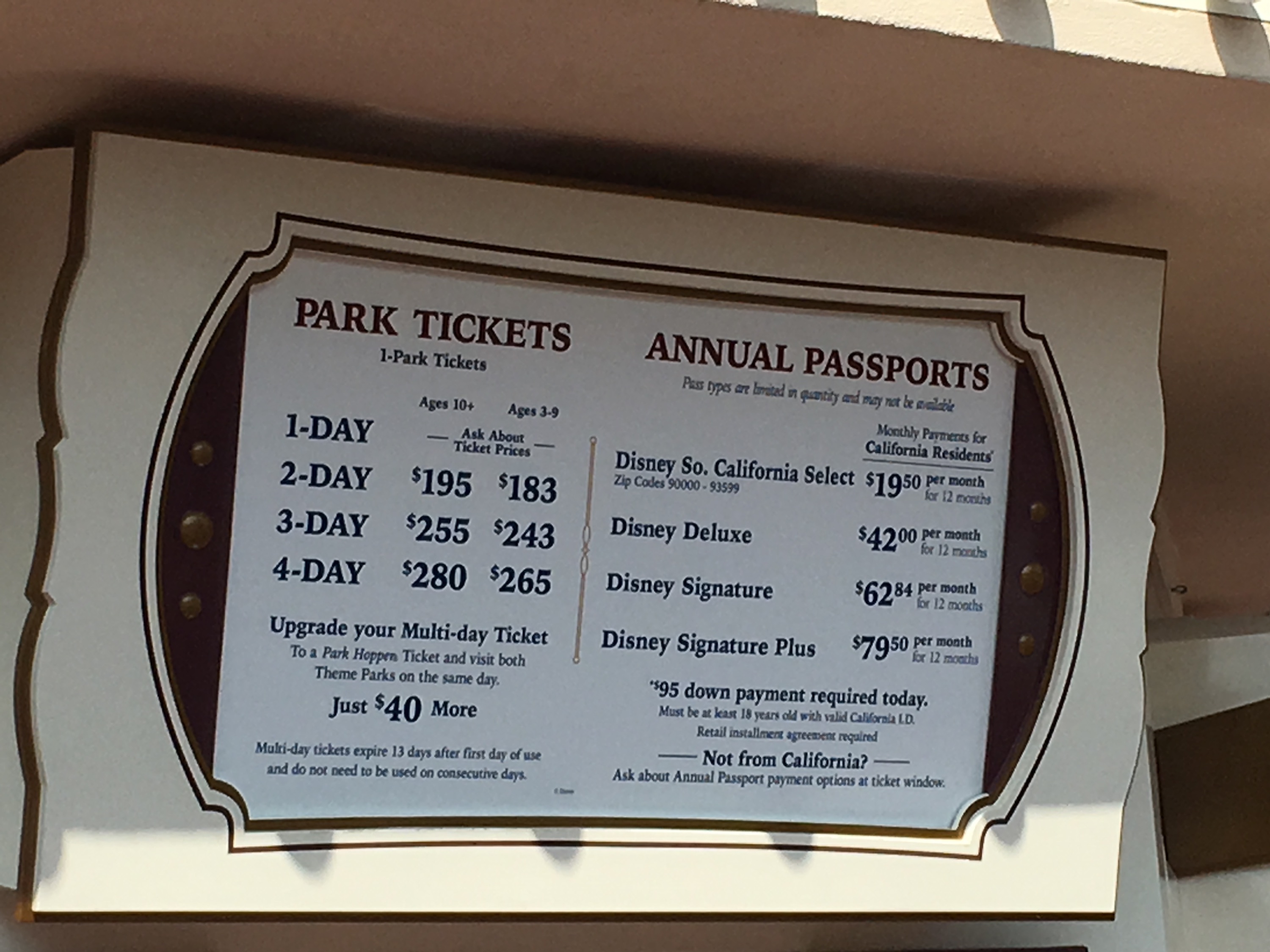 The big news of last week was Disney's change to seasonal pricing for one-day tickets while raising the prices of many multi-day tickets. You can read a full report here, but there is a silver lining. With the price being lowered for one-day tickets on low travel days, the down payment required for guests purchasing annual passes with monthly payments has decreased as they use the lowest cost ticket for this purpose. Of course, it means that the monthly price increases, but that increase is spread out over 11 months.